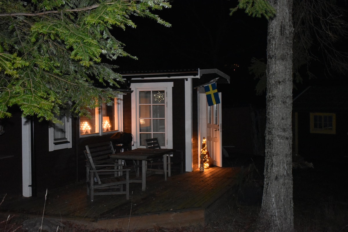 Erleben Sie einen schwedischen Winter in einer warmen Hütte, umgeben von Schnee und Wald, nur 15 Minuten von Stockholm entfernt. Die Hütte liegt in einem ruhigen Viertel, völlig still und doch nah an der Stadt. Mit Lichtern dekoriert entsteht eine gemütliche Weihnachtsatmosphäre. Ideal für Ruhe, Nähe zu Weihnachtsmärkten und Spaziergänge im Winterwald.
