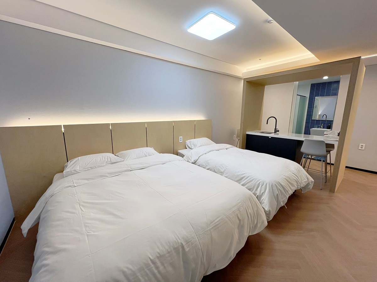 ⭐️호호스테이 안내 - 한팀만 이용하는 레지던스 - 동해오션시티호텔 코너스위트룸 타입 - 방2개, 화장실2개, 거실&부엌 - 2인기준 최대4인까지 이용가능 (입구 CCTV로 확인) - 영유아 기준인원포함 36개월 이상부터 추가요금 발생 아동/성인 1인추가요금 2만원 - ❌❌날짜변경은 무료취소기간인 7일전까지만 가능합니다 그이후에는 날짜변경 안되오니 참고해주시기 바랍니다 - 죄송하지만 반려견은 입실불가 합니다. - 다이슨에어랩, 세탁기, 보드게임 등등 -궁금한 사항은 쳇으로 문의주세요😍