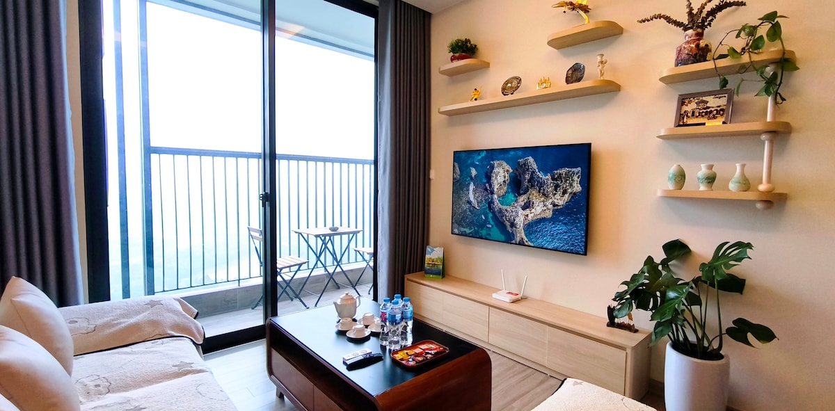 2 Schlafzimmer, 1 Wohnzimmer mit kostenlosem Netflix, 1 Küche, 1 Esszimmer, 1 Teestube, 2 Badezimmer. Im Vergnügungskomplex Sun World Ha Nam gelegen, in der Nähe von Touristenattraktionen: Tam-Chuc-Pagode, Dia-Tang-Phi-Lai-Tu … Ruhige Unterkunft, günstige Lage für Ausflüge entworfen in einem raffinierten Japandi-Stil, der die Einfachheit Japans und die Wärme Skandinaviens vereint. Das besondere Highlight ist der vertikal verlängerte Raum mit einer 4,5 m hohen Decke, die ein Gefühl von Leichtigkeit und Luxus schafft und die Nutzfläche optimiert.