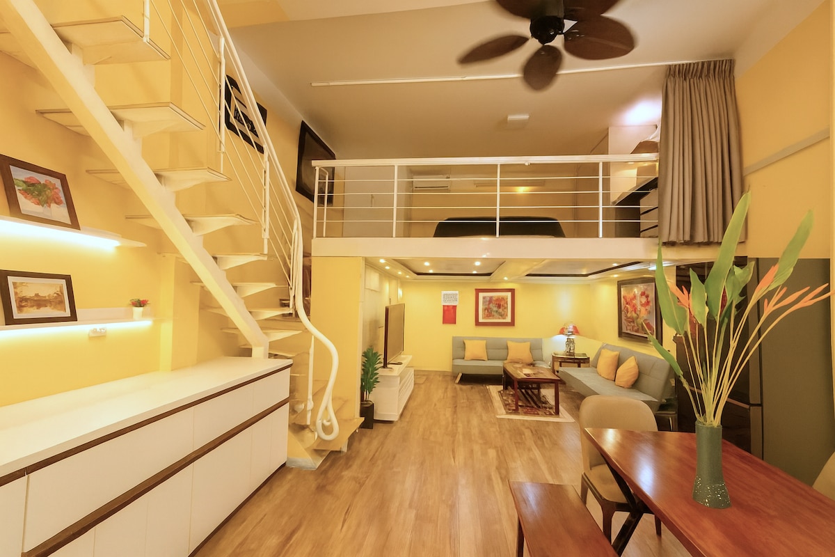 WALKABLE LOCATION FREE LAUNDRY/ BREAKFAST/ BOARDGAME PERFECT FOR BIG GROUP Wake up to sunlight streaming through big windows, share breakfast before heading out to explore Hanoi’s hidden gems. Plenty of space with less traffic noises, noloud music at night and newly rennovated apt. Nestled in a charming alley, the French villa remains its original architecture but was redesigned with traditional Vietnamese art elements to give you the experience of a local way living.