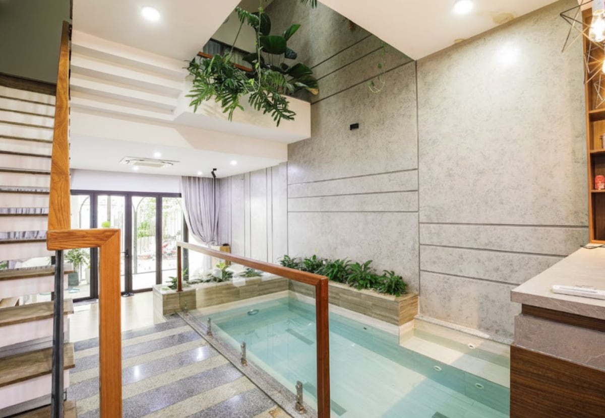 Das TeeMi House befindet sich im Zentrum von Danang, das 5 Gehminuten von der Han-Brücke und 5 Gehminuten vom Han-Markt entfernt ist. Es verfügt über 5 Schlafzimmer mit eigenem Bad, eine schöne Dachterrasse und einen Swimmingpool für Kinder, ein schönes Wohnzimmer, das mit dem Ess- und voll ausgestatteten Küchenbereich verbunden ist. Das ganze Haus gehört dir mit eigenem Eingang, so dass das TeeMi-Haus perfekt für einen Familienausflug oder eine große Gruppe von Freunden geeignet ist. Außerdem befindet sich das TeeMi-Haus in einer 2 Meter breiten Wohngasse, nur 3 Gehminuten von der Hauptstraße entfernt.