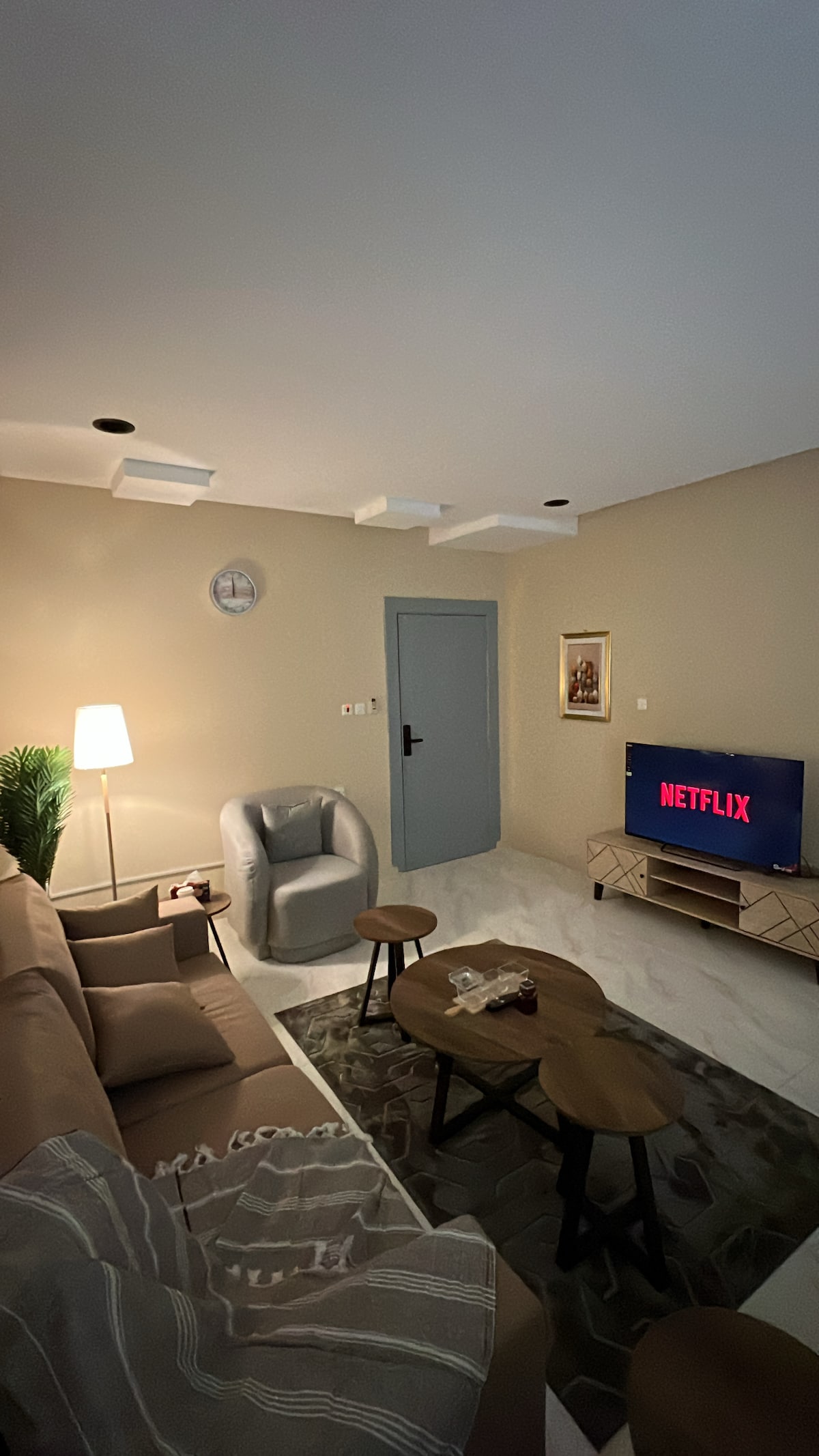 Genieße das unverwechselbare Design der Wohnung, bestehend aus einem Hauptschlafzimmer und einer Seitenhalle, die mit großer Sorgfalt und Liebe zu den Wünschen unserer geschätzten Gäste gestaltet wurde. Wir haben dir das Internet mit 5G-Geschwindigkeit zur Verfügung gestellt, um deinen Lieblingsfilm auf einem 65-Zoll-Fernseher zu genießen, 10 Minuten vom Flughafen und 4 Minuten von der Al Othaim Mall entfernt. Du kannst auch den West Corniche Park genießen, der nur 5 Gehminuten entfernt ist.