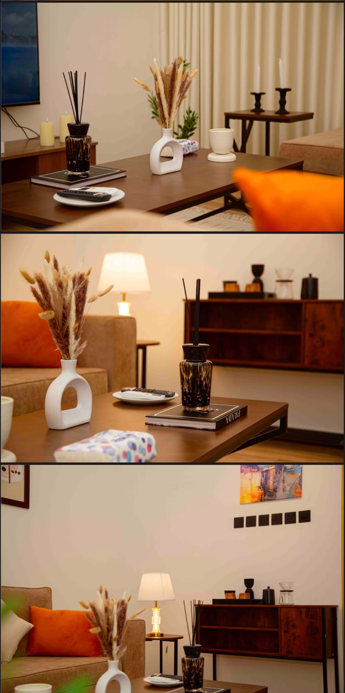 Mit einem Zweibettzimmer und einem komfortablen Schlafzimmer, einem 55-Zoll-Fernseher mit angesehenem Netflix, einem Badezimmer mit Whirlpool, einem vollen Blick auf die Stadt und die Berge von Aja Es verfügt auch über eine Lounge mit vollem Blick auf die Stadt und die 30 Meter hohen Berge von Ajai, bestehend aus einem amerikanischen Sofa für vier Personen, natürlicher Landschaftsgestaltung, abstrakten Brettern, einem 65-Zoll-Fernseher mit Netflix, einer Aussicht, einem Esstisch für 4 Personen und einer Küchenzeile. Es gibt einen Kühlschrank, eine Mikrowelle, eine Kaffeemaschine, Tee und einen Elektroherd.