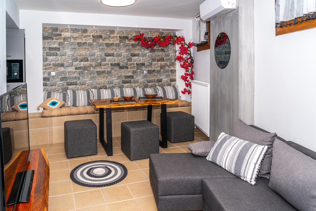 Das G&S House kombiniert Privatsphäre und ruhige Umgebung und überrascht dich, da es sich um einen neu gebauten Halbkeller handelt, der nur 200 m vom Meer und 2 km vom Stadtzentrum von Nea Moudania entfernt liegt. Unser Raum, inspiriert von den „Aromen“ der kykladischen Inseln, ist mit allen modernen Annehmlichkeiten ausgestattet, die eine entspannende und beruhigende Stimmung bieten. Der private Garten im Freien wird deine Momente der Entspannung in unserem Raum vervollständigen!