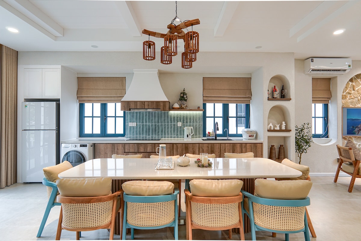 Aurora Villa – Finnischer Rückzugsort mit Meerblick 🌊 Villa im skandinavischen Stil mit 4 Schlafzimmern (14 Betten) mit Meerblick, elegantem Interieur aus Birkenholz, Marimekko-Dekor und gemütlichen Moomin-Akzenten. Genieße den großen Infinitypool am Meer, den 36-Loch-Golfplatz, Wasser- und Abenteuerparks, die längste Fußgängerzone mit Klimaanlage und den Bikini-Strand in der Nähe. Die Aurora Villa wurde für lange Aufenthalte mit einer voll ausgestatteten Küche, stilvollen Wohnräumen und luxuriösen Details entworfen und verbindet finnische Ruhe mit Phan Thiets lebendigem Küstencharme. 🌅