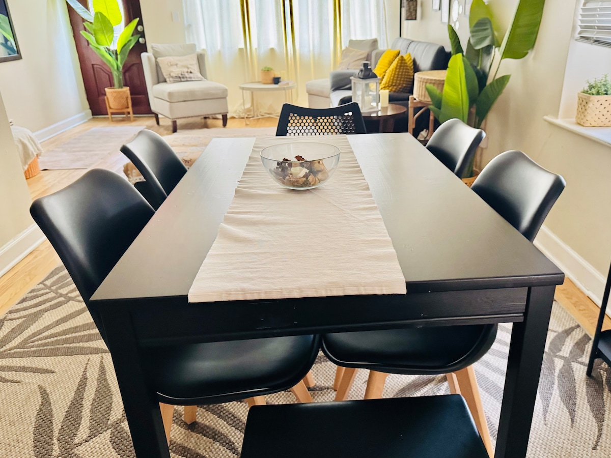 Fühl dich in einer charmanten Wohnung mit allen Annehmlichkeiten wie zu Hause! Verliere dich beim Vogelbeobachten oder beim Lesen eines Buches, umgeben von üppigen Gärten. Mache einen kurzen Spaziergang in die Innenstadt von Homewood, um dort einzukaufen und zu essen, oder nimm den Zug nach Chicago. 🏳️🌈 BLM Sicherer Raum! Nach einem Tag voller Erkundungen verwöhnen dich ein Kingsize-Bett und ein luxuriöses Badezimmer! Ein ausklappbares Sofa schafft ein zusätzliches Bett. Hunde willkommen! Diese Suite verfügt über eine Küchenzeile mit einem Umluft-Toasterofen und Induktionskochfeld.