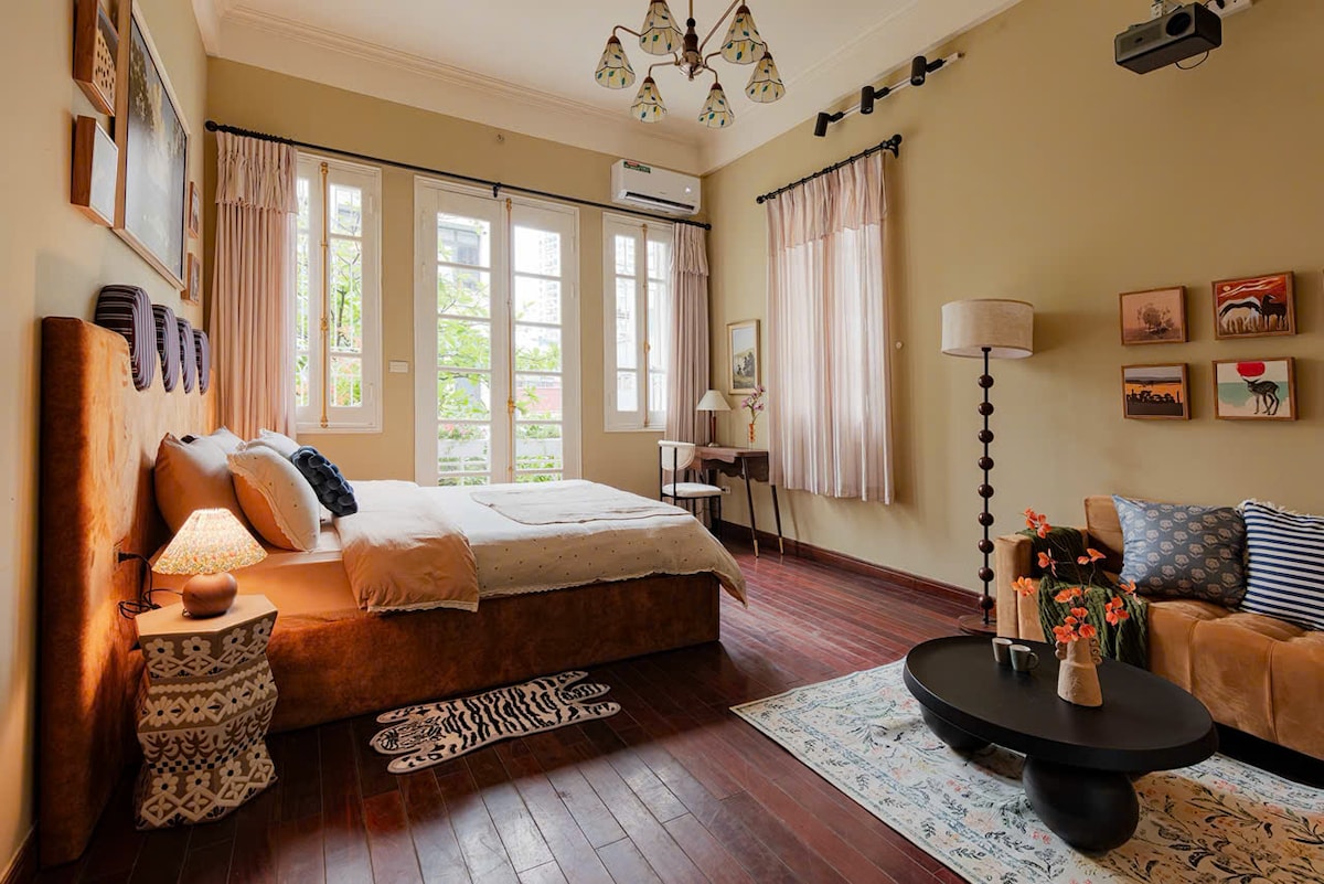 Unsere stilvolle Boutique-Wohnung liegt in einer ruhigen Gegend, nur wenige Gehminuten vom See, dem Puppentheater, dem Historischen Museum, der Bierstraße und vielen Restaurants entfernt und verfügt über ein atemberaubendes Innendesign mit lokalem Kunsthandwerk. Erlebe nostalgischen Charme kombiniert mit modernem Komfort und ultimativer Privatsphäre. Die Wohnung ist komplett mit einer Küche, einer WASCHMASCHINE, einem geräumigen Badezimmer, luxuriösen modernen Armaturen und einer super bequemen riesigen Matratze ausgestattet. Genieße einen unvergesslichen Aufenthalt in Hanoi mit dem gleichen Komfort wie zu Hause.
