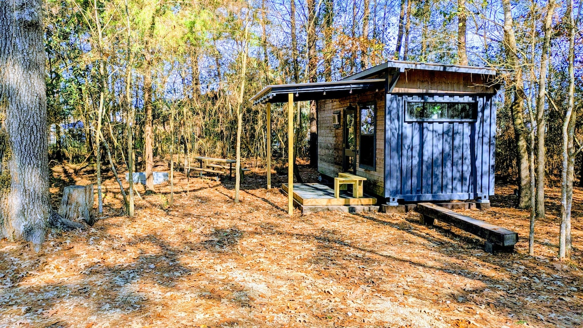 Ein kleines Stück Texas-Paradies! HINWEIS: 20 % RABATT aufgrund von Camp/Gelände derzeit IN ARBEIT. 20ft Container-Unterkünfte sind komplett, gemütlich & bereit für Gäste! Ruhige, abgelegene, nicht gepflegte Umgebung mit viel Platz zum Wandern. Haustiere ERLAUBT - keine Leine erforderlich. Komfortables und gut ausgestattetes Tiny House in einem 20-Zoll-Schiffcontainer mit kalter Klimaanlage, Küche, Bad/Dusche, Doppelbett. Feuerstelle, Hängematte, Picknicktisch. Crosby & Atascosita sind kurze Fahrten. UberEats bietet! Entspannendes Gefühl & komfortable Unterkunft