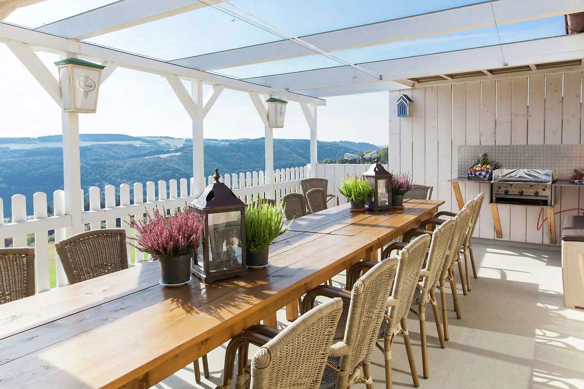 LuxApart Vista steht für dein luxuriöses Feriendomizil in der Eifel, mit Panorama-Outdoor-Sauna – ideal für Paare, Familien & Freunde. Genieße 135 qm Komfort mit atemberaubendem Blick auf die Eifel-Wälder über dem Ahrtal. Zwei ruhige Schlafzimmer, eine moderne Küche mit Kochinsel und Zugang zur 70 qm Terrasse sowie ein gemütliches Wohnzimmer mit Smart TV und Kamin. Entspanne in der Outdoor-Sauna und erlebe die perfekte Auszeit – egal ob romantisch zu zweit, mit der Familie oder Freunden.
