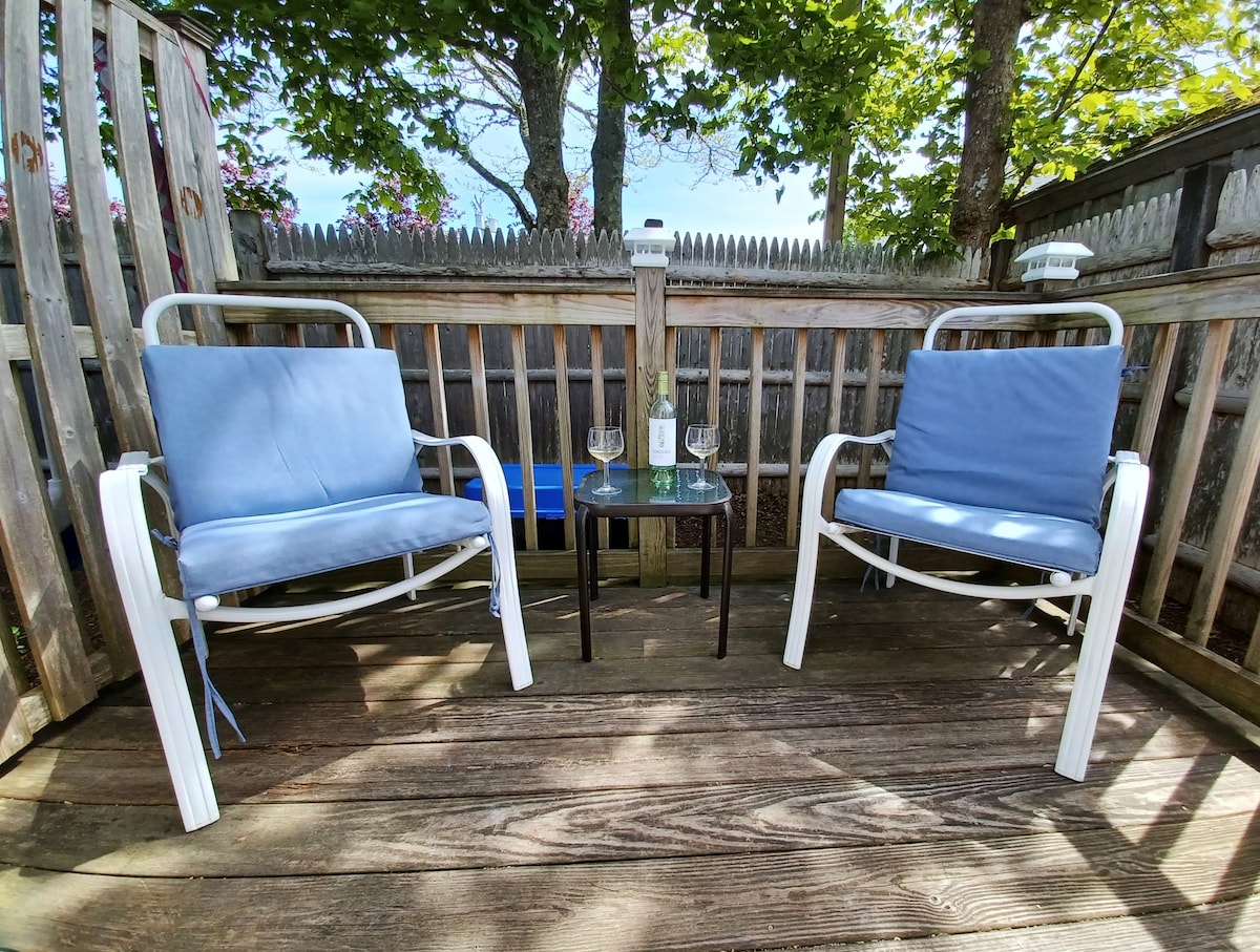 Neu renoviertes 250 Quadratfuß großes Studio bei Near Beach Rentals. 300 Meter zum Glendon Beach. Voll möbliertes Studio wartet auf deinen Cape Cod-Urlaub. Gehe morgens zum Strand und du bist nah genug, um zum Mittagessen zurückzulaufen. Das Studio verfügt über ein Queensize-Bett, ein Einzelbett, eine Küchenzeile mit Herd, Kühlschrank, Kaffeemaschine und Mikrowelle, Klimaanlage, 40-Zoll-Smart-TV, ein neu renoviertes Badezimmer, WLAN und Zugang zum Gemeinschaftshof mit Grills und Möbeln.