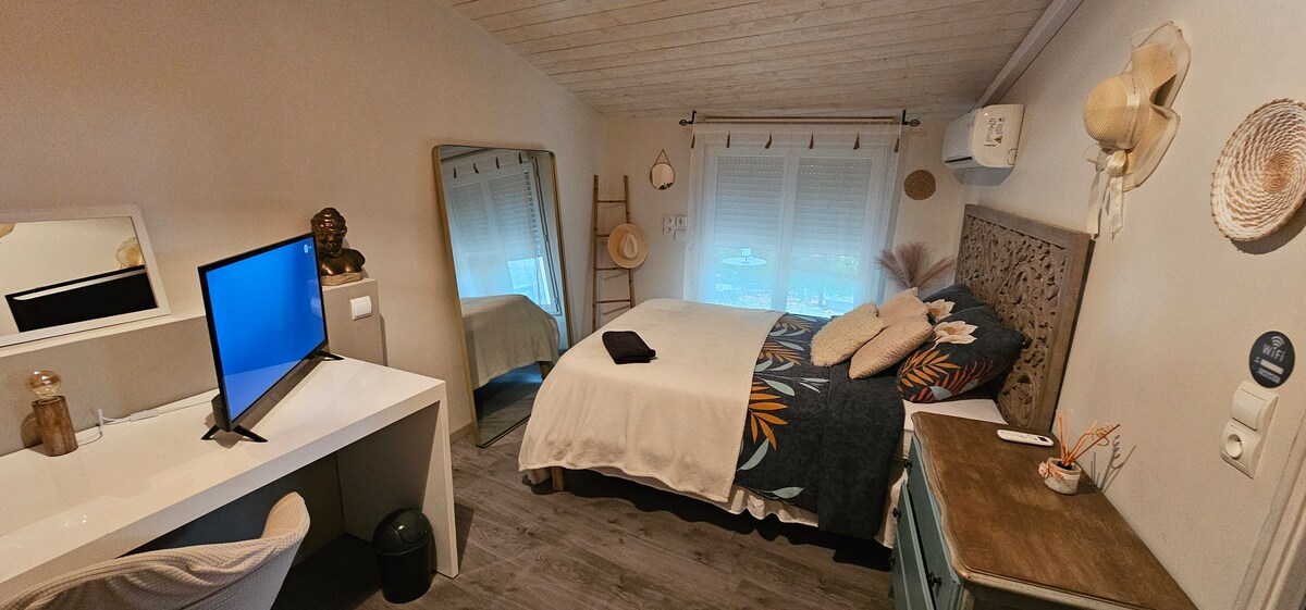„Ein kleines Stück Paradies“ geöffnet vom 8. Juni bis 20. September 2026. Klassifiziert mit 3 Sternen. Ruhiger Ort, am Wildwasser. Cooles Studio + Klimaanlage 2 Terrassen, Sommerküche, natürlicher Pool privat ab Mittag, großer Garten. Erstaunliche wilde Gegend an den Pyrenäen, die es zu entdecken gilt. 5 Minuten von einem schönen See entfernt, wo du mit dem Zweisitzer-Kajak (im Preis inbegriffen) fahren kannst. Wandern, Reiten (2 Mountainbikes inklusive). Berge und bemerkenswerte Sehenswürdigkeiten rundherum. Willkommen bei Tieren, Privatparkplatz.