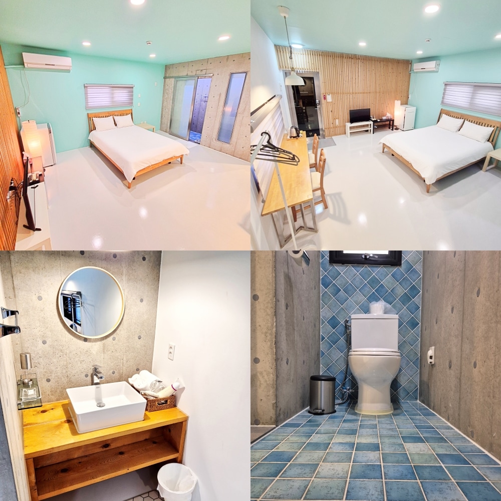 Das Küstendorf Daepyeong-ri, das sich gemütlich unter dem Gun-San Oreum befindet, ist der Grund, warum viele Menschen diesen Ort besuchen, mit seinen steilen Klippen und dem fantastischen Blick auf das Jeju-Meer. Der Blick auf das Meer und die Bucht von Park-Woo, die Sie aus dem Fenster des Zimmers genießen können, ist eine wahre Heilung für die Seele. Ein Spaziergang durch die abgelegenen Dorfstraßen von Daepyeong-ri, in dem man leben möchte, und ein Spaziergang am Meer bei Sonnenuntergang werden eine wunderbare Erinnerung an die Reise bleiben. Zu den nahegelegenen Sehenswürdigkeiten gehören Es gibt einen 3-minütigen Spazierweg am Meer (Olle 8 Kurs) von der Unterkunft entfernt. Es ist ein schöner Spazierweg mit Klippen und Sonnenuntergängen namens Parkyung. Andeok-Gyeok, Gunsan Oreum, Jungmun-Touristengebiet, Jungmun-Sokdae-Strand, Sanbang-San, Songaksan, Sagye-Wanderweg, Carmel-Hügel, Osulloc, Bontae-Museum, Bangju-Kirche, Seogwipo-Stadt usw. sind innerhalb von 30 Minuten mit dem Auto erreichbar.