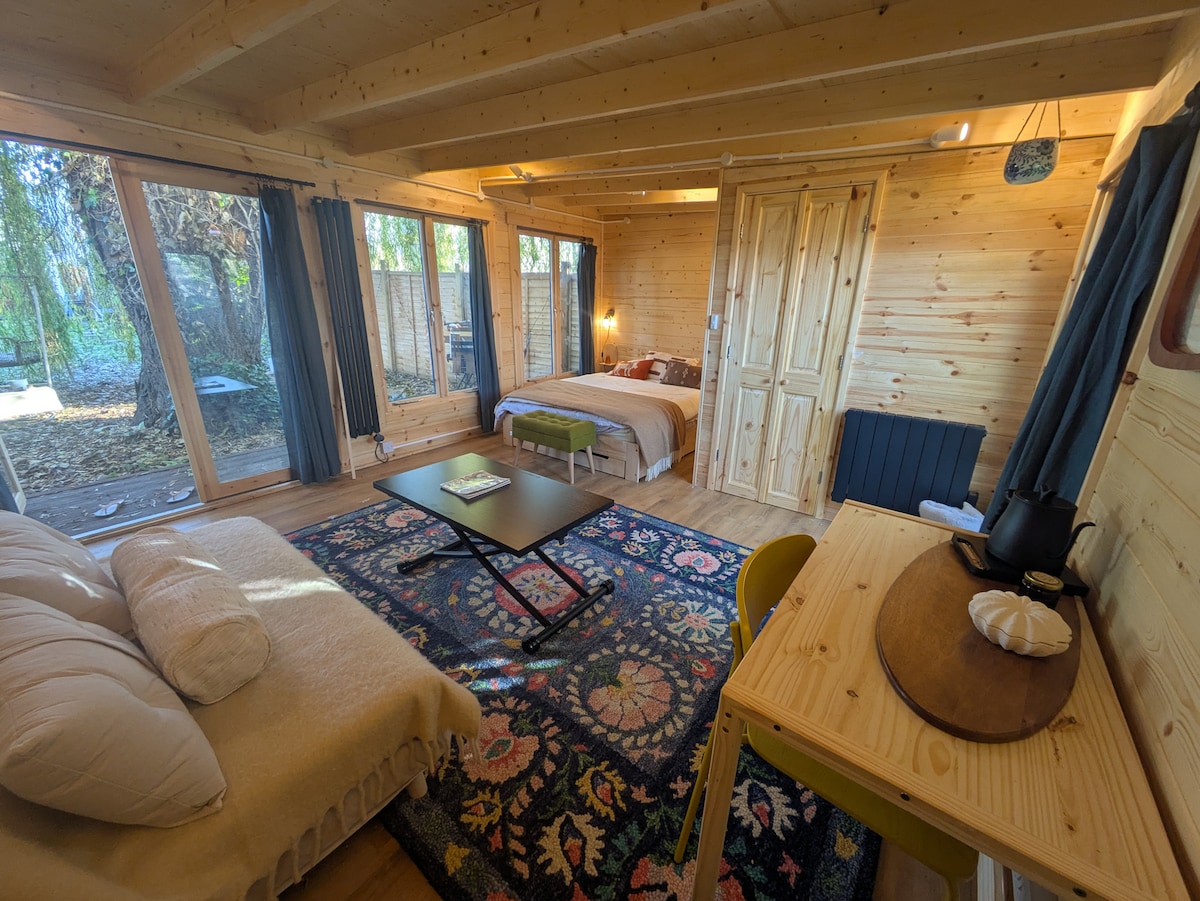 Komfortable Hütte in unserem ruhigen Garten