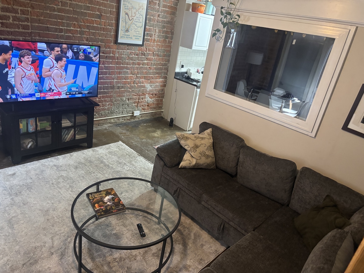 Diese stilvolle und geräumige Wohnung mit einem Schlafzimmer und einem Badezimmer befindet sich im Herzen der Stadt, aber ruhig in der Nähe des Flusses gelegen. Das Zimmer verfügt über ein Kingsize-Bett mit schönem und gemietetem Dekor. Es ist mit einem 75-Zoll-Fernseher für einen entspannten Abend im gemütlichen Wohnzimmer, einer frischen Popcorn-Maschine, einer Nintendo Switch und einer voll ausgestatteten Küche ausgestattet. Restaurants und Bars sind zu Fuß erreichbar und VCU, James River, Carytown und der größte Teil von Richmond sind nur wenige Minuten entfernt.