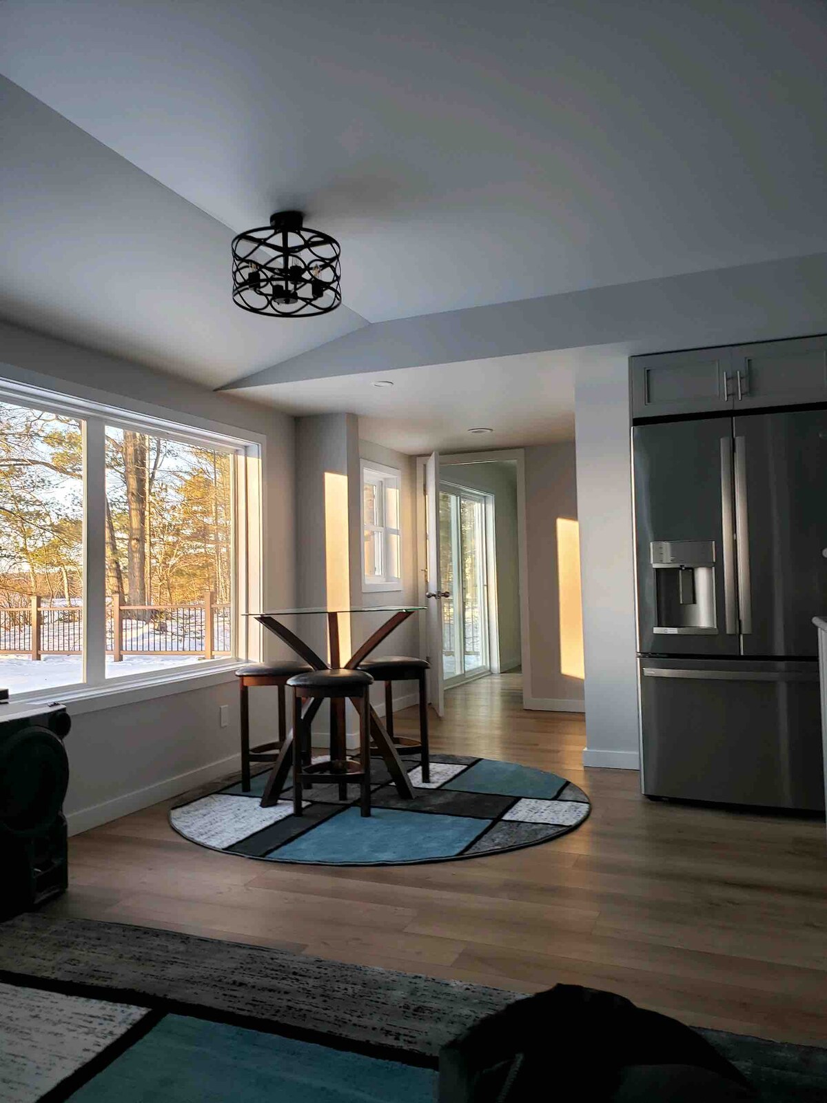 Du hast den gesamten Keller - zwei Schlafzimmer, ein Badezimmer, einen kleinen Küchenbereich und ein Wohnzimmer - für dich allein. Wir befinden uns in einer bewaldeten Umgebung ein paar Meilen von der Stadt entfernt. Du kannst deinen eigenen Terrasseneingang (Blick auf den Teich) mit Zugang zu einer Feuerstelle genießen. Wir befinden uns in der Nähe des White Pine Trail. Wir denken, du wirst die Unterkunft friedlich und gemütlich finden. Es gibt eine Treppe ins Obergeschoss, aber sie ist mit Vorhängen versehen und mit Schaumstoffplatten bedeckt, um die Privatsphäre zu gewährleisten. Du hast die gesamte Etage und den Eingang für dich allein!