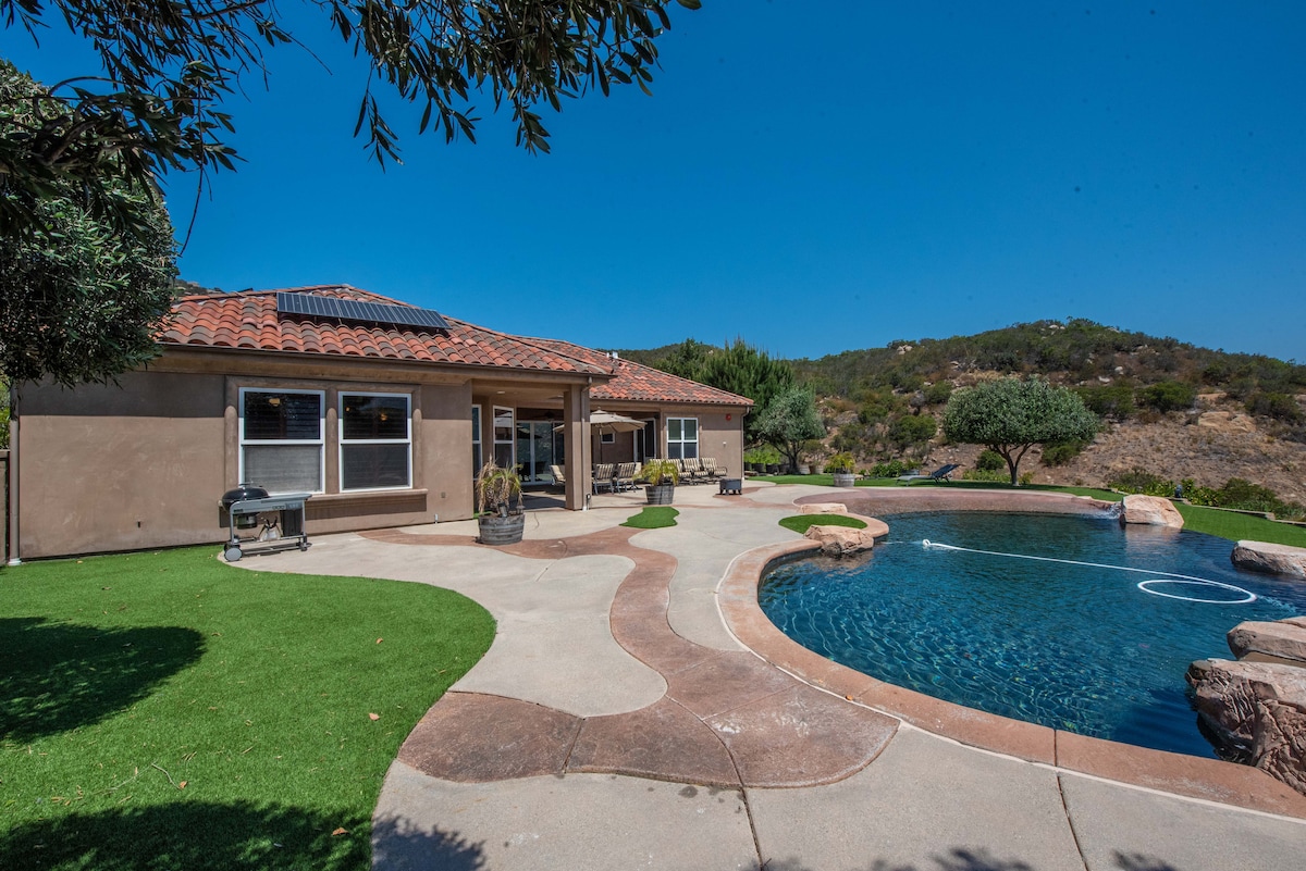 Das vollständig eingezäunte, private Haus verfügt über 3 Schlafzimmer und 2,5 Badezimmer und bietet eine fantastische Aussicht. Schwimme in einem Salzwasser-Infinity-Pool oder entspanne dich im Salzwasser-Whirlpool. Bediene dich an 8 verschiedenen Obstbäumen vor Ort oder entspanne dich an der Feuerstelle im Freien. Zahlreiche Parkplätze. Shuffleboard-Tisch für Spielunterhaltung. Das Welk Resort ist zu Fuß erreichbar und bietet 8 Pools, 2 Golfplätze, ein Spa und Restaurants. Sehenswürdigkeiten in der Nähe des San Diego Zoo Safari Park und der Weingüter von Temecula.