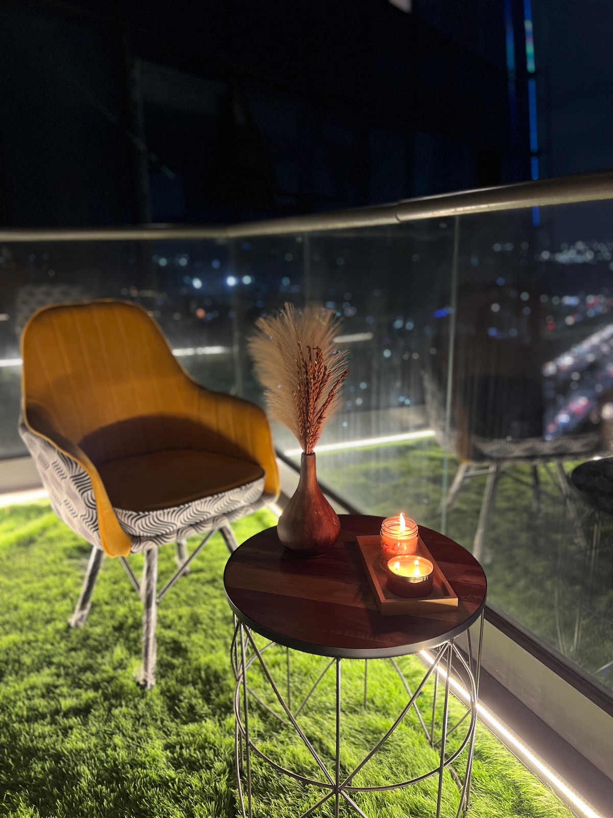 Willkommen in unserem lebendigen und gemütlichen BnB, wo Komfort auf Stil trifft! Genieße den atemberaubenden Blick auf die Stadt durch eine raumhohe Glaswand, die einen Sitzplatz in der Vorderreihe zur geschäftigen Autobahn darunter bietet. Egal, ob du hier bist, um dich zu entspannen oder zu erkunden: Unsere Unterkunft ist so konzipiert, dass du dich wie zuhause fühlst. Mit allem, was du brauchst, und einem Hauch von Farbe in jeder Ecke, findest du den perfekten Ort, um dich zu entspannen und die Atmosphäre zu genießen. Erlebe die perfekte Mischung aus Komfort, Spaß und atemberaubender Aussicht!