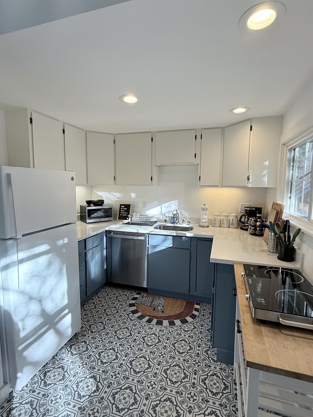 Versammle dich am gemütlichen gemauerten Kamin für abendliche Gespräche im stattlichen holzgetäfelten großen Raum. Das 1914 erbaute Gebäude aus der Edwardian-Ära bewahrt seine klassische Architektur, während moderne Renovierungen, darunter elegante Schränke, Quarzarbeitsplatten, eine geräumige, verglaste Dusche und eine ruhige Farbpalette aus kühlen Grautönen, den historischen Raum auf den neuesten Stand bringen. Die geräumige Gästesuite ist über 1300 Quadratfuß groß. Mit Fenstern an 4 Seiten des Gebäudes strömt Licht in den Raum.