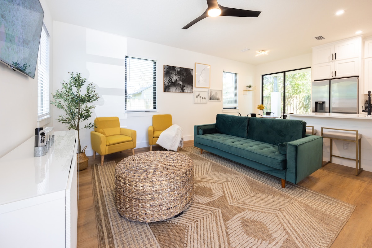 Genieße deinen Aufenthalt in diesem gemütlichen und komfortablen Haus mit 1 Schlafzimmer und Bad im begehrten South Downtown Orlando. Erhol dich gut im großen Queensize-Bett, mit einem 65-Zoll-Smart-TV, der mit Netflix ausgestattet ist. Restaurants und Geschäfte sind zu Fuß erreichbar. WLAN und Parkplätze sind inbegriffen. Flughafen MCO: ~16 Minuten Fahrt Disney: ca. 20 Autominuten Universal Studios: ca. 15 Autominuten Hollywood Studios: ca. 20 Autominuten Sea World: ca. 15 Autominuten Downtown Orlando: ca. 5 Autominuten
