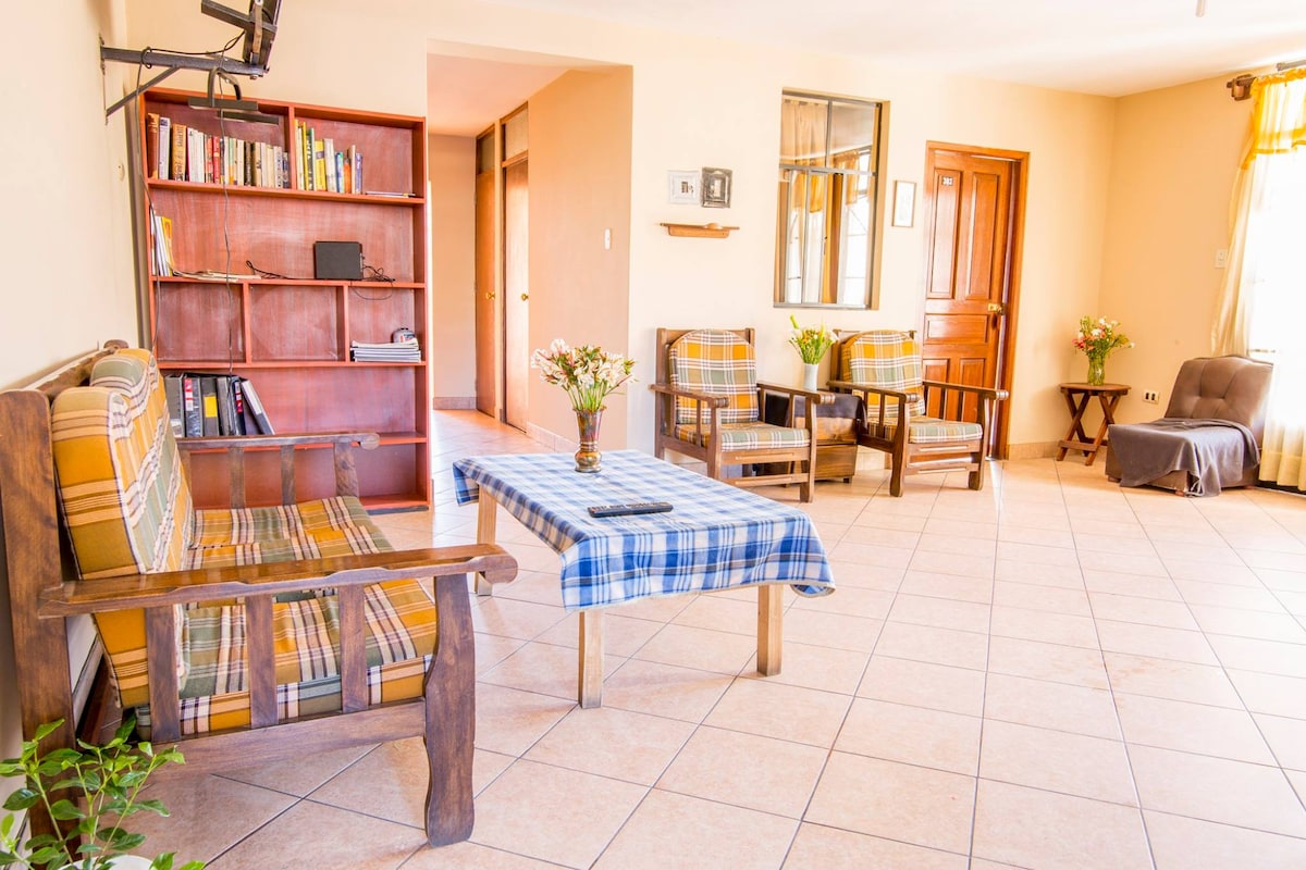 Genießen Sie den Komfort von 1 Zimmer geräumige Zimmer . Mit ausgezeichneter Lage (12 Minuten zu Fuß und 4 Minuten mit dem Auto von der Plaza de Armas) ; warm, gemütlich, verfügt über 1 eigenes Bad, mit heißem Wasser 24 Stunden, Smart-TV 35', Premium-Kabel, Wi-Fi.. wird Ihren Aufenthalt sehr angenehm. Wir stellen dir Toilettenartikel zur Verfügung und holen sie am Busbahnhof ab, verkaufen, um dich willkommen zu heißen und dich mit einer warmen Umarmung willkommen zu heißen,