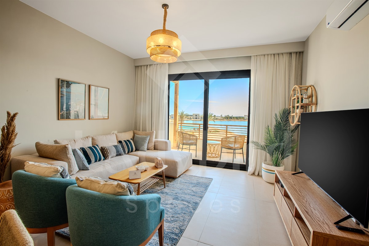 Erlebe ein luxuriöses Wohnen in dieser stilvollen Einheit mit einem Schlafzimmer in El Gouna. Mit elegantem, modernem Design, einem offenen Wohnbereich und raumhohen Fenstern bietet diese Unterkunft einen atemberaubenden Blick auf die Lagune und den Pool. Genieße eine voll ausgestattete Küche, Badezimmer und eine private Dachterrasse, die sich perfekt zum Entspannen eignet. In einer erstklassigen Gemeinde mit Zugang zu Pools, Stränden und lebhaften Restaurants gelegen, ist dies der perfekte Rückzugsort für Eleganz und Komfort.