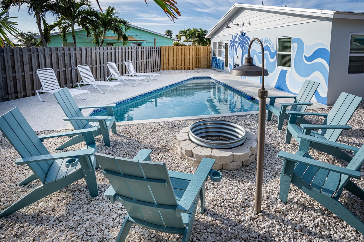 Golfcart & Spaziergang zum Strand, privater Pool & Feuerstelle