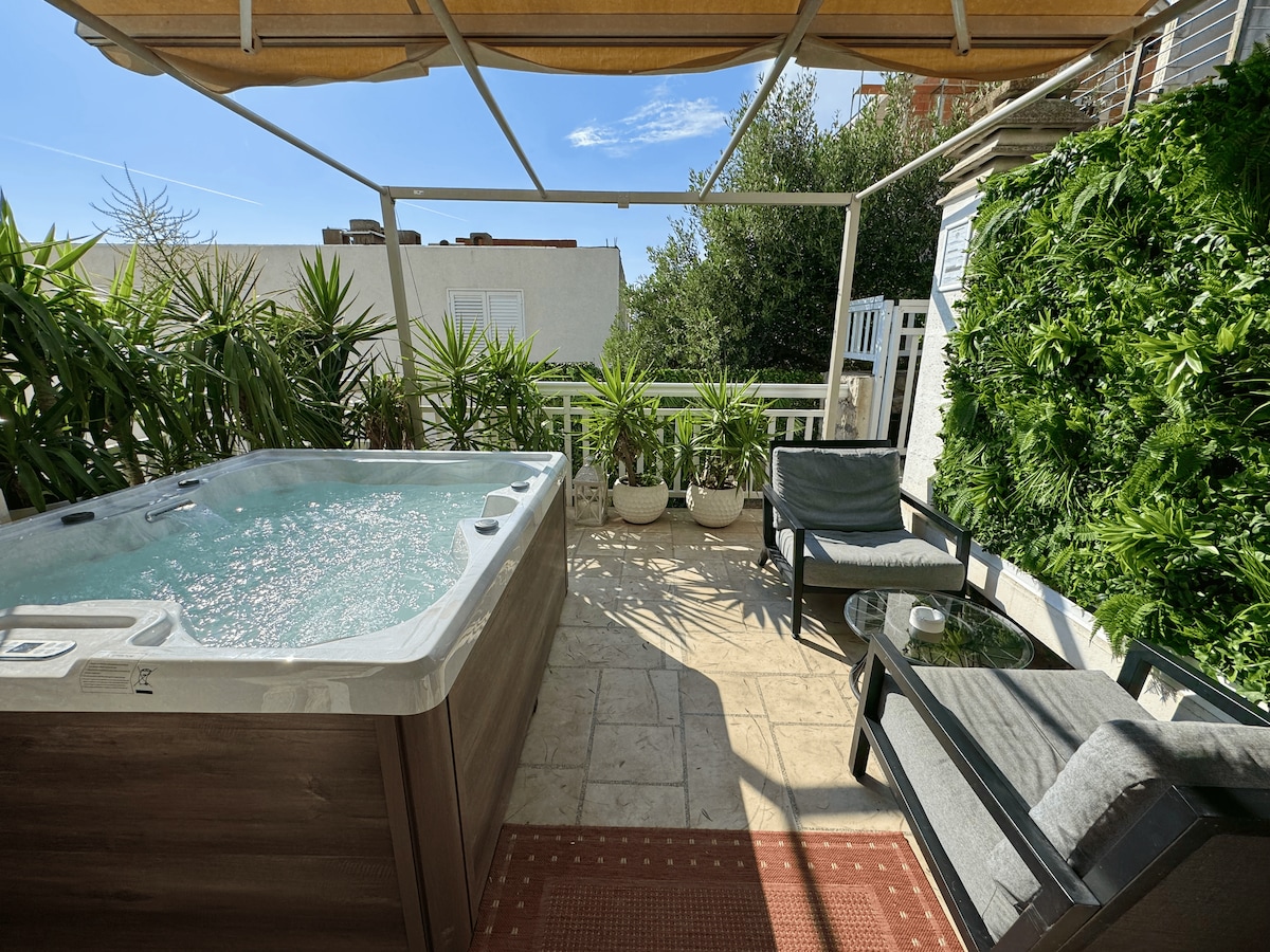 Relax and enjoy your stay at @Casa Benita Hvar, a guesthouse designed for relaxed island living. Step outside onto your private terrace, complete with a jacuzzi, lounge sofa & Mediterranean plants—perfect to relax after a day of exploring. Whether you want to enjoy your favourite Netflix shows, soak in the hot tub, enjoy a moment with a book or sip a drink in the fresh air, this space is all yours. Each morning, enjoy a fresh, light breakfast delivered to your room—INCLUDED in the price.