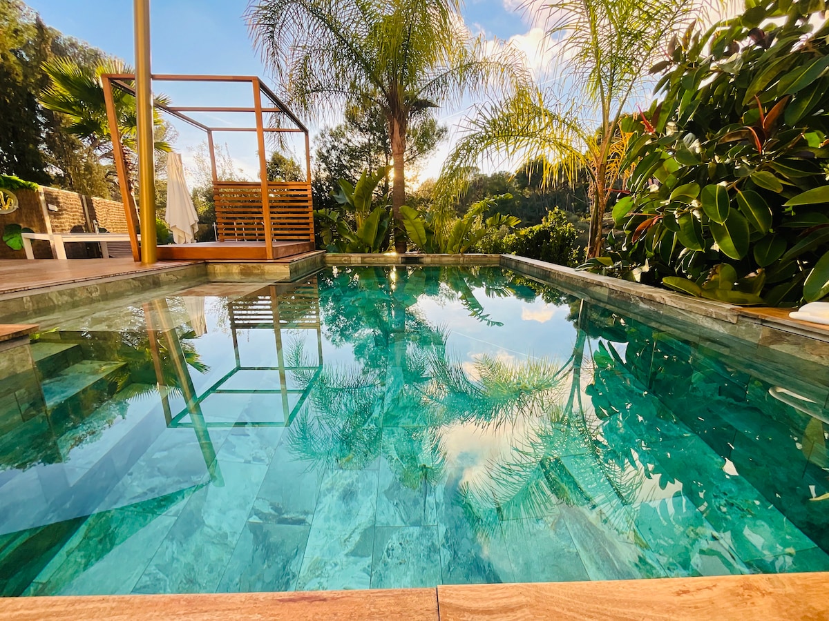 Tauchen Sie ein in das Herz eines exklusiven und privatisierten tropischen Gartens in absoluter Privatsphäre und vor neugierigen Blicken geschützt. Dieses kleine Paradies entlang des Flusses, das vom Gesang der Zikaden und Vögel umgeben ist, bietet Ihnen einen totalen Tapetenwechsel. Eine Einladung zum Reisen! Sie werden einen privaten Pool und einen herrlichen beheizten privaten Whirlpool mit Blick auf den Garten genießen, ohne Gegenüber. Ein Obstgarten mit Feigenbäumen, der sich über eine herrliche, von einem Fluss gesäumte Wiese erstreckt, verfeinert dieses Anwesen
