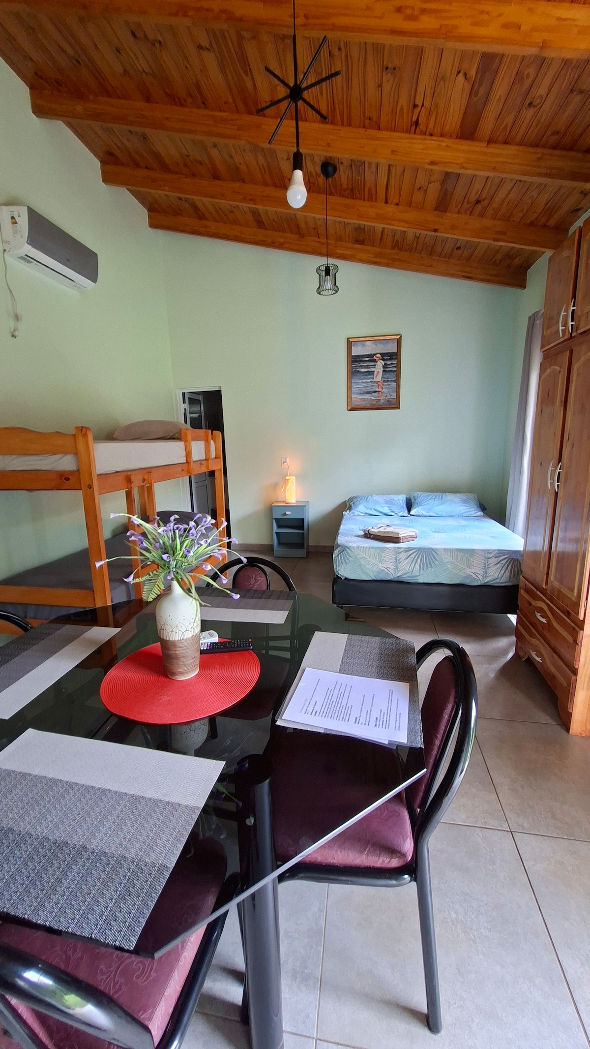Willkommen in unserer charmanten 48 Quadratmeter großen Hütte! Wir freuen uns, Ihnen einen gemütlichen und komfortablen Raum bieten zu können, in dem Sie einen unvergesslichen Aufenthalt genießen können. An der Costa del Sol Iguazú haben wir 5 komfortabel eingerichtete Hütten für 4, 5 und 6 Personen. Die Hütten wurden mit aufgeforstetem einheimischem Holz gebaut, wobei das Design, die Materialien und die Traditionen der Region berücksichtigt wurden. Gleichzeitig verfügen sie über die notwendige Technologie und den Komfort, um einen angenehmen Aufenthalt zu gewährleisten.