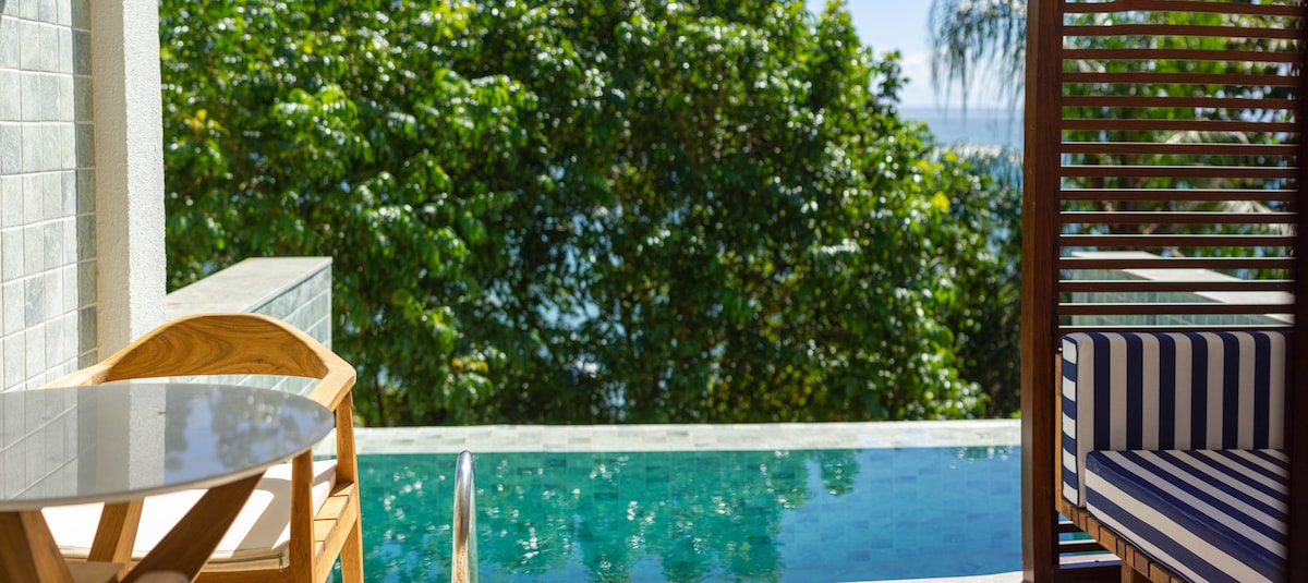 Romantischer Dschungel-Bungalow mit warmem Pool