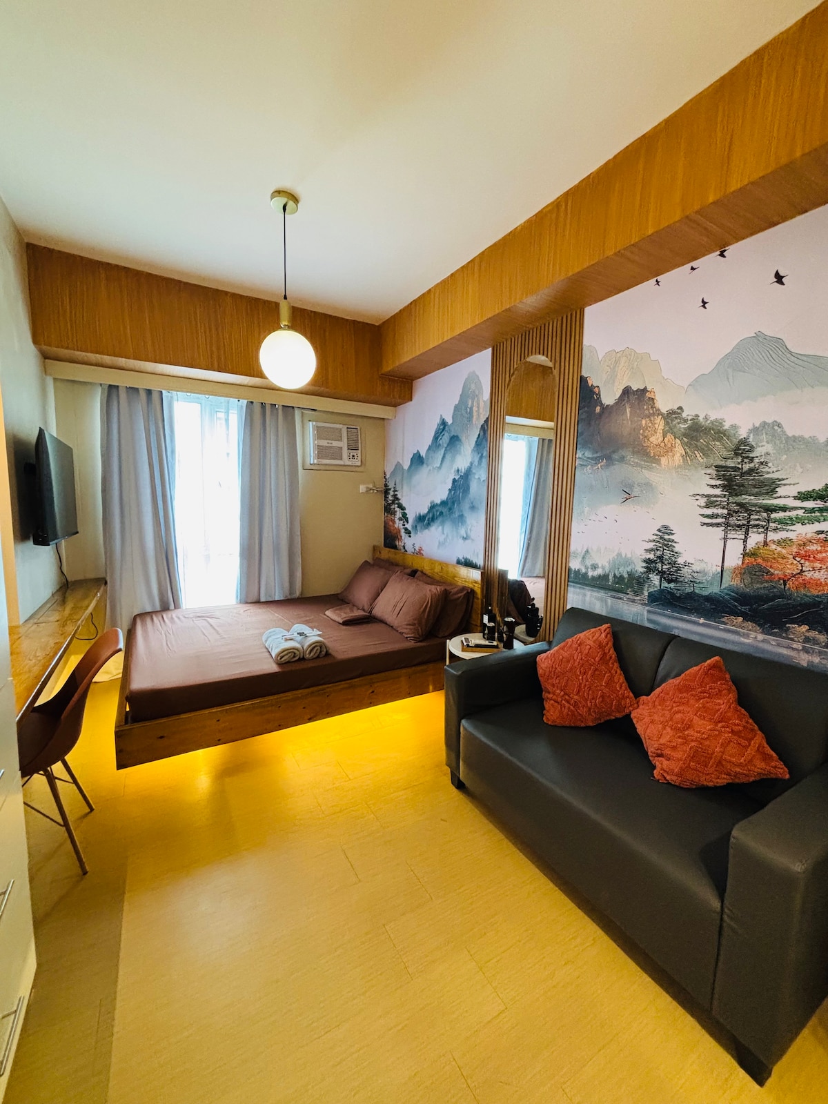 Welcome to Serene Stay—a modern, stylish condo right beside SM City Iloilo. 🌿 Designed with clean lines, warm lighting, and cozy elegance, this space features a glass-partitioned bedroom, plush beddings, and a fully equipped kitchen. Perfect for work or leisure, with dining space, relaxing sofa, and hotel-like comforts all in one chic retreat. 🏙️