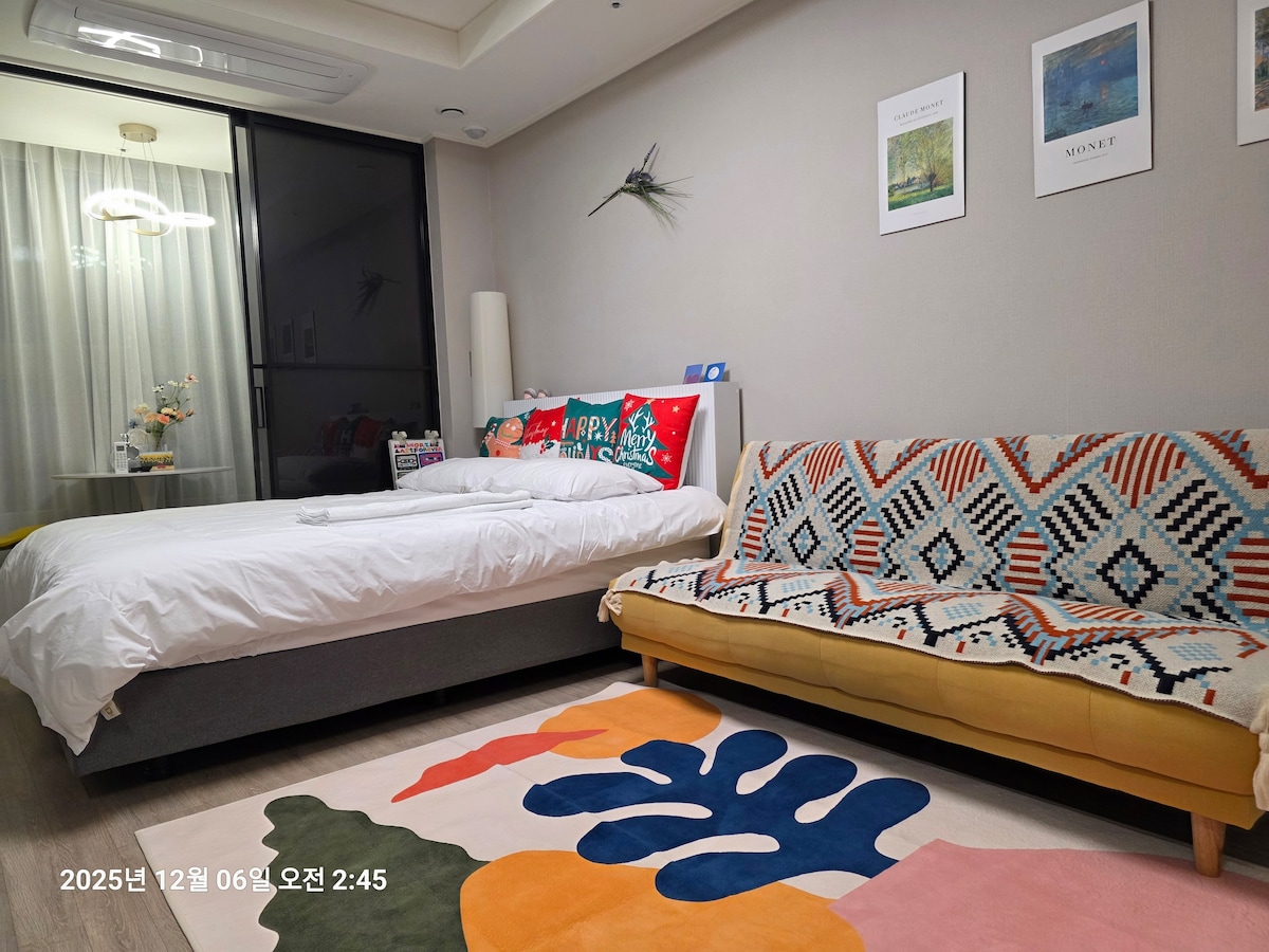 Es befindet sich direkt vor der U-Bahn-Linie 3, Daehwa Station, und ist 3 Minuten mit dem Auto von Kintex entfernt. Gute Erreichbarkeit von Kintex, bequeme Verkehrsanbindung und reichlich Parkplätze #Unterkunft# - Queen-Size / Bettwäsche / Verdunkelungsvorhänge -2 Personen Einrichtung für Paare, Langzeit-Geschäftsreise-Unterkunft möglich -Netflix / Disney verfügbar - 1 Parkplatz kostenlos -Wir rechnen über die App ab #Gästeeinrichtungen / Verfügbarer Raum # - Waschen möglich (Waschmittel + Weichspüler vorhanden) / Trockner - Kochen möglich (Kochutensilien + Topf + Fritteuse + Mikrowelle / elektrischer Wasserkocher / Wasserkocher / Kaffeekapseln) - Grundgewürze / Speiseöl / Salz / Zucker / Sojasauce -Toilettenartikel (Zahnbürste/Zahnpasta/Drei Phasen/Lotion/Duschgel/Schaumreiniger/Make-up-Entferner/Reinigungsöl/Wattepad - Handtücher -Haartrockner/Bügeleisen -6 Flaschen Mineralwasser pro Nacht bereitgestellt # Weitere Vorsichtsmaßnahmen # - Wir können nicht für Beschwerden verantwortlich gemacht werden, die durch Partys, die Nachbarn schädigen können, oder durch lautes Geschrei verursacht werden. -Geruchsintensive Lebensmittel können nicht gekocht werden (Schweinebauch, roher Fisch)