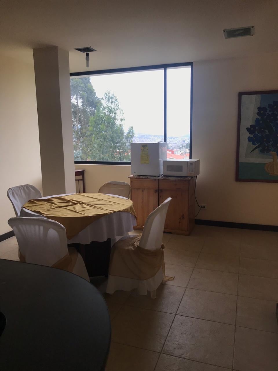 Hermoso mini departamento en el centro de la ciudad; renovado y equipado. Una cama de 2 1/2 plaza, segunda cama de 2 plazas. Cuentas con: Farmacias, clínica, ferreterías, restaurantes, comida, gimnasios, panaderías, tiendas, supermercados, servicio de lavandería, peluquerías, Bancos, Cooperativas, Municipio, Gobernación, Registro Civil, transporte. Internet alta velocidad, Smart TV de 52’ y otra de 65’ YouTube y Netflix integrados. Caja de canales TV con deportes en vivo.