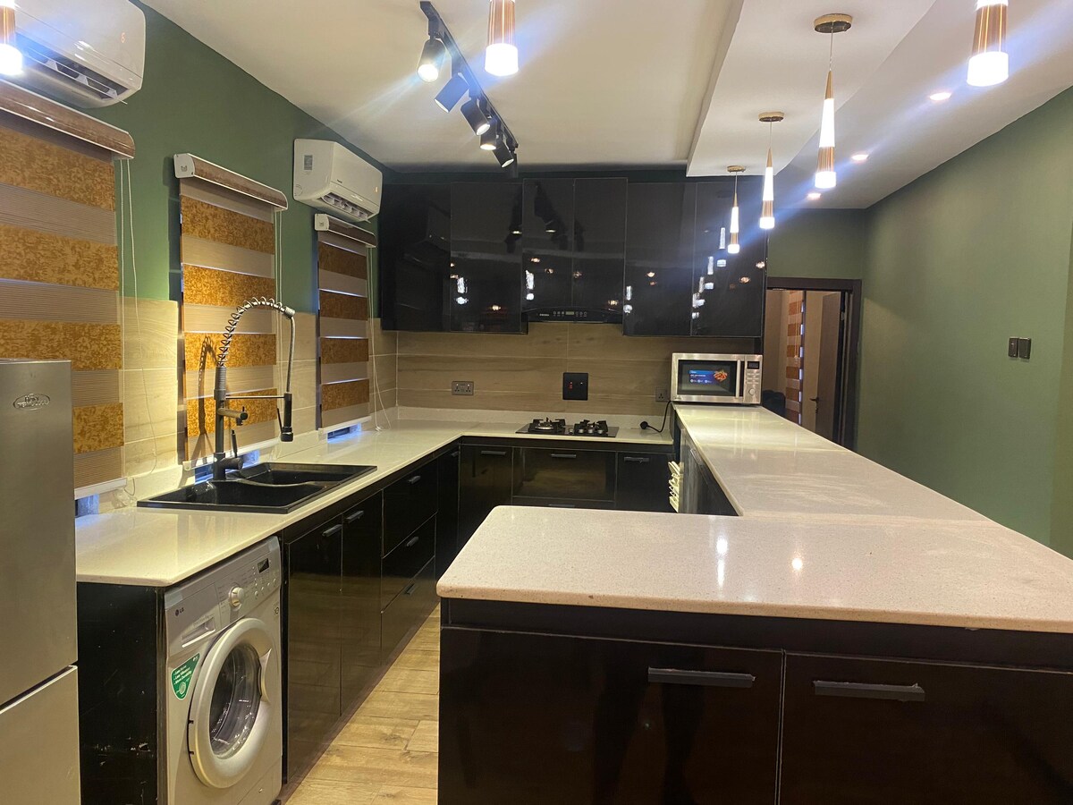 Diese schöne Wohnung befindet sich in einer ruhigen und sicheren Umgebung und bietet den Gästen ein Gefühl wie zu Hause. Die Gäste haben Zugang zu fabelhaft gestalteten und dekorierten Zimmern/Wohnzimmer, einer modernen Küche, Netflix/Prime-Streaming, unbegrenztem Internet und 24/7 Stromversorgung (SIEHE HAUSORDNUNG ZUR STROMVERSORGUNG vor der Buchung). Wir bieten unseren Gästen erstklassige Gastfreundschaft, was uns zum perfekten Ort für deine Kurz- und Langzeitaufenthalte macht!