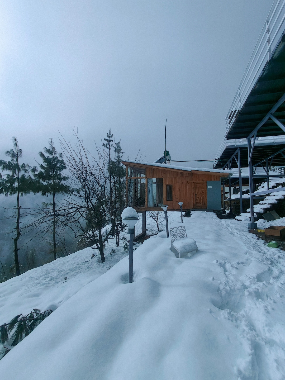 Du wirst diese einzigartige und romantische Auszeit lieben. Dieses gemütliche Baumhaus in Tandi: Über den Wolken, eingewickelt in Nebel. Das ist ein Ort für Träumer. Ein Zufluchtsort. Ein Raum, in dem der Wind alte Geschichten erzählt und sich die Ruhe wie eine Umarmung anfühlt. Egal, ob du dich im Bett zusammenrollst oder im Whirlpool sitzt, du wirst die Magie des Himalaya um dich herum spüren. Es ist ein 26-28 Quadratmeter großes Baumhaus.