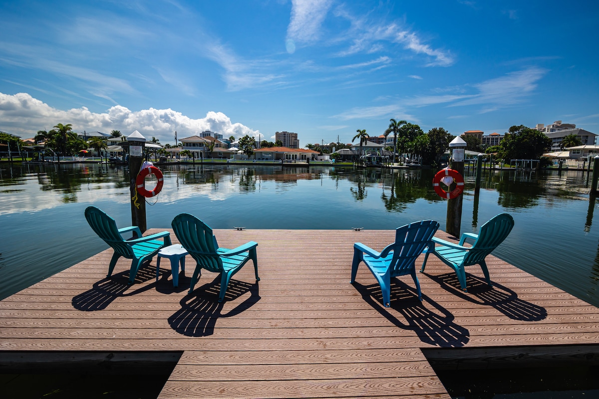 BTR#2114 Diese Unterkunft bietet ALLES, einschließlich unglaublicher Sonnenuntergänge im offenen Wasser! Jedes Detail wurde sorgfältig durchdacht und aktualisiert. Dies ist ein SEHR gehobenes, einstöckiges Haus am Wasser an der Küste. Eine komplette Renovierung am Wasser mit Dock und Pool, die wie ein neues Zuhause aussieht und sich wie ein neues Zuhause anfühlt, mit atemberaubendem Wasserblick von Ihrer eigenen Hinterterrasse! Das Wasser glitzert und funkelt von 15 Uhr bis Sonnenuntergang und danach wird der Himmel für 40 Minuten in Brand gesetzt. Der weiße Sandstrand ist nur wenige Blocks entfernt! Erstaunliches Zuhause innen & außen!