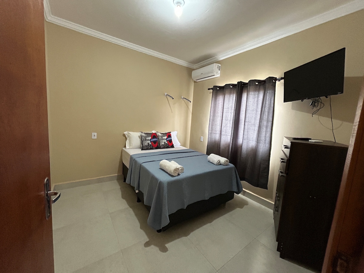 Mit 2 Schlafzimmern, eines davon mit Klimaanlage und bis zu 3 Parkplätzen, ist Espaço Morada deine nächste Unterkunftsoption in der Nordwestregion von Goiânia. Es ist ein einzelnes Haus auf dem Grundstück, das allen Komfort und die Privatsphäre bietet, die für einen angenehmen Aufenthalt erforderlich sind. Diese Unterkunft befindet sich im Viertel Morada do Sol, einem typischen Wohnviertel, aber seine Hauptstraßen bieten mehrere nahe gelegene Annehmlichkeiten, wie: Supermärkte, eine Bäckerei, eine Drogerie usw.