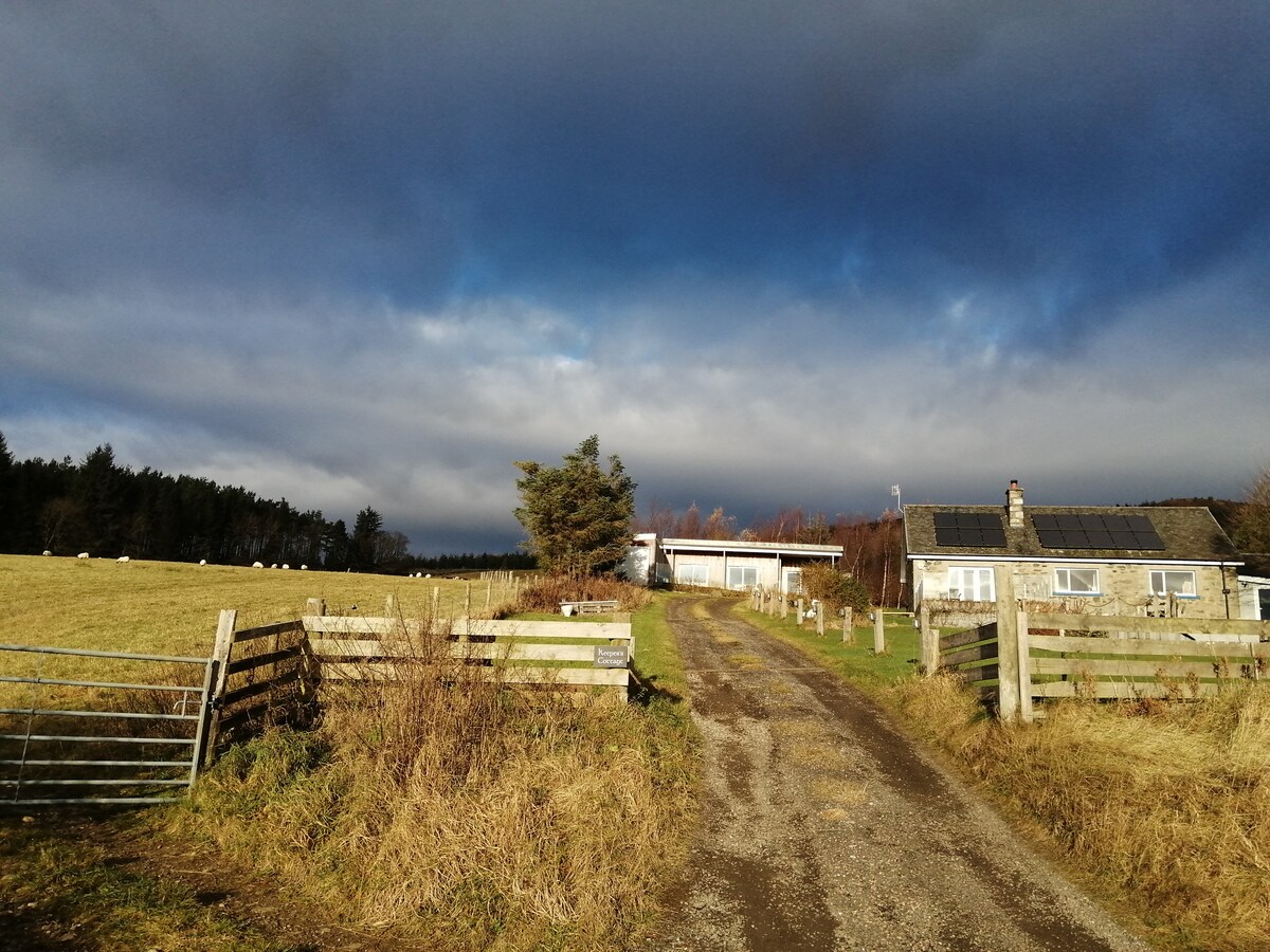 1-Schlafzimmer-Ferienhaus in Highland Perthshire, 3 Meilen von Aberfeldy & Grandtully entfernt. Holzbeheizte Sauna im angrenzenden Steading (1. Nutzung inbegriffen). Idyllisch am Fuße des Farragon-Hügels gelegen, mit schönen Spaziergängen direkt vor der Tür. Es gibt ein geräumiges Super-Kingsize-Schlafzimmer (oder zwei Einzelbetten), einen spektakulären Wohnraum, eine moderne Küche und ein Duschbad, einen eigenen Eingang, einen Parkplatz und einen Sitzbereich im Freien. Beachte die Lage des Hauses, wie in den „Hausregeln“ beschrieben (Allradantrieb für den Winter empfohlen).
