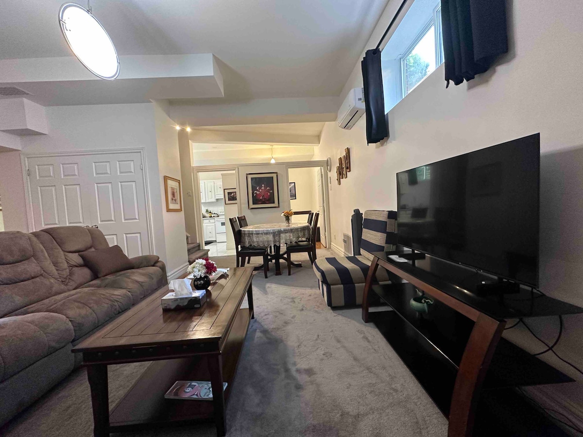 Gemütlich, hell und privat! Diese voll möblierte Suite im Untergeschoss verfügt über einen modernen Wohnbereich, eine elegante Küchenzeile, ein komplettes Badezimmer und ein Schlafzimmer mit einem Queensize-Bett sowie einem Schlafsofa, das perfekt für bis zu 3 Erwachsene ist. Mit einem privaten Eingang und viel natürlichem Licht ist es ein idealer Ort, um sich zu entspannen, zu arbeiten oder einen ruhigen Kurzurlaub zu genießen. Egal, ob du hier bist, um dich auszuruhen, zu arbeiten oder zu erkunden, dieses ruhige Refugium bietet Komfort, Bequemlichkeit und ein echtes Zuhause-weg-von-Zuhause-Erlebnis.
