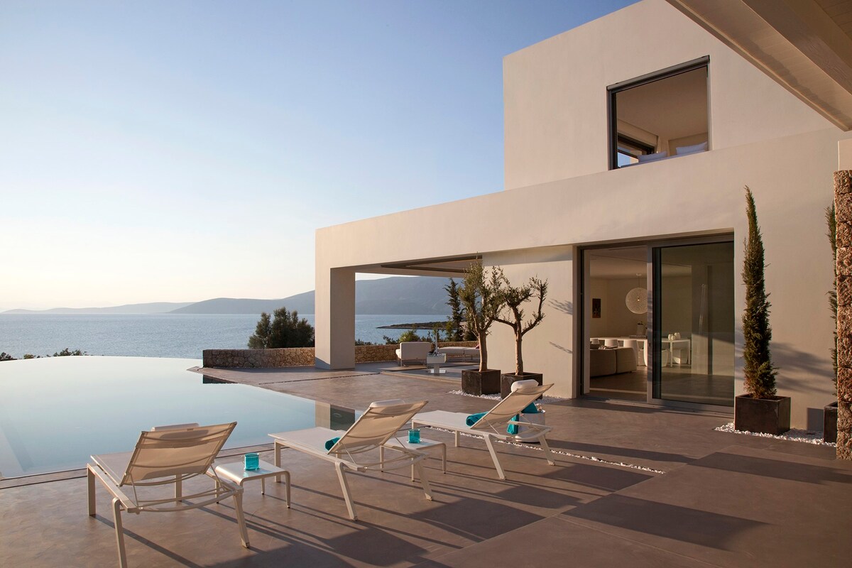 Omnia luxury sea view villa is as its name stands for in latin “ everything “ that you might dream of. Built in a very privileged location on the Agassi hilltop it offers not only a panoramic view of both the shimmering sea and the island's main town and harbor but also it gives you a proximity to “everything” you might need . This unique private property brings enthusiasm with the natural and modern decoration in minimalistic design in soft tones.