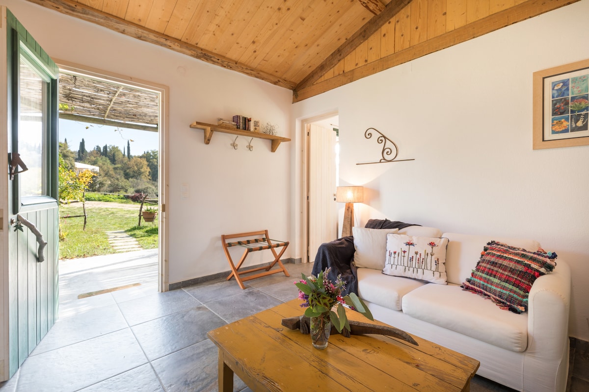 Ein kleines Steinhaus inmitten von Olivenbäumen auf einem großen Privatgrundstück mit herrlichem Meerblick, wo Gäste Ruhe und Frieden finden können. Das Haus ist nur wenige Gehminuten von einem schönen Meer und dem Dorf entfernt, wo unsere Gäste sowohl die kristallklaren Strände als auch die verschiedenen Restaurants, Cafés und Veranstaltungen genießen können. Während ihres Aufenthalts bei uns können sie auch einige unserer Bio-Früchte und -Gemüse, hausgemachten Ziegenkäse, frische Eier, Olivenöl und Oliven genießen.