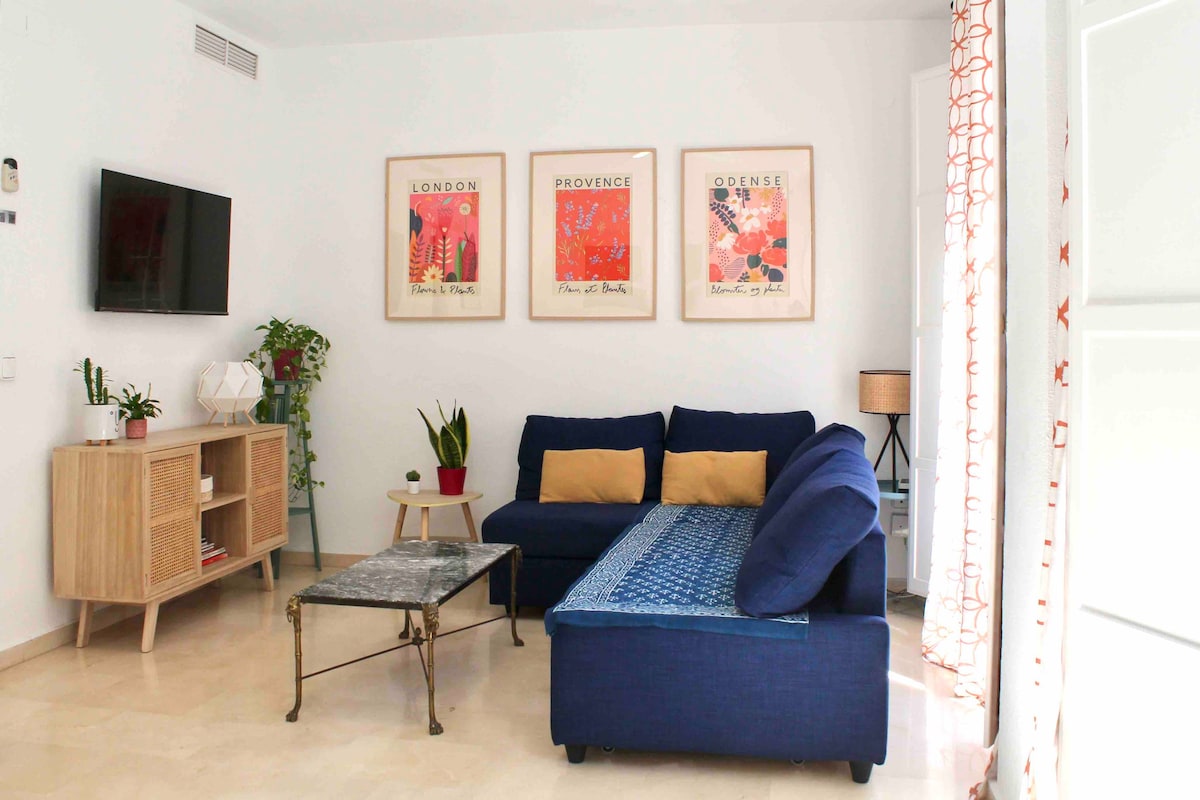 Apartamento con entrada independiente en edificio histórico de principios de SXX. Recién reformado con calidades de primera y mobiliario que lo hace único y diferente. Suelo de madera de roble y obras de artistas locales. Barrio de San Julián , centro histórico pero fuera del bullicio turístico para conocer la auténtica Sevilla local. Rodeada de iglesias y conventos en una calle muy tranquila pero a 5 minutos de la Alameda y calle Feria, donde están los bares y zona más animada.