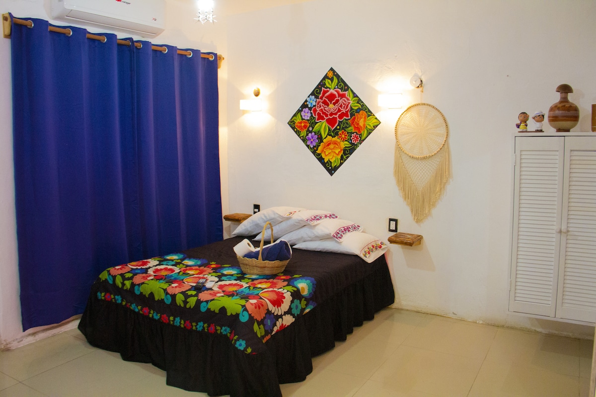 Schönes Luxus-Haus im Maya- und Hartholz-Stil. Ein authentisches prähispanisches Erlebnis. Die Suite verfügt über eine ausgestattete Küche, ein Badezimmer, ein Schlafzimmer mit Smart-TV und einen Kleiderschrank, eine private Terrasse und einen Garten sowie einen großen gemeinsamen Pool ohne Chlor. Schöne Luxus-Suite mit Oberflächen aus Edelhölzern und im Maya-Stil. Ein authentisches mexikanisches Erlebnis im präkolumbischen Stil. Sie verfügt über eine voll ausgestattete Küche, ein komplettes Badezimmer, ein Schlafzimmer mit Smart-TV und Kleiderschrank, eine private Terrasse und einen Garten sowie einen großen, gemeinsamen Pool ohne Chlor.