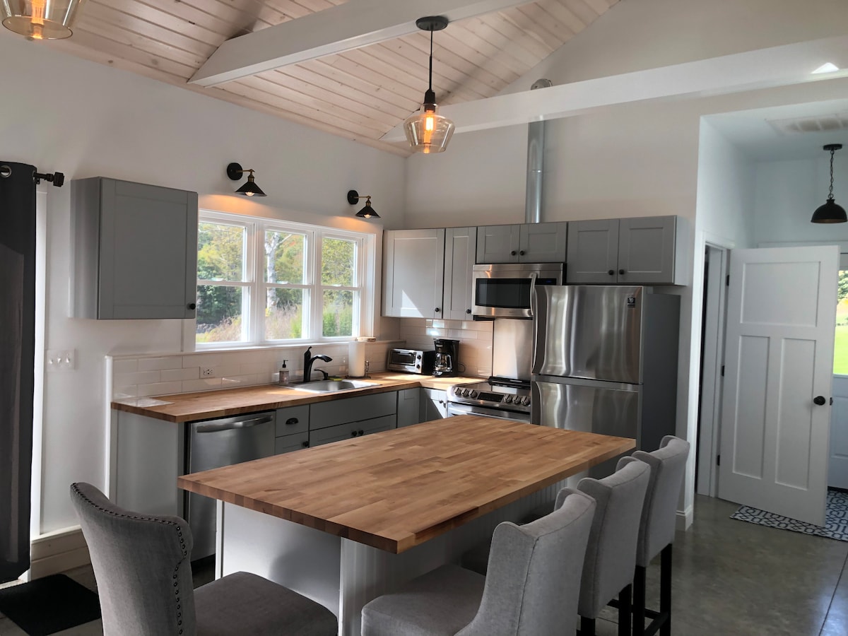Dieses romantische und luxuriöse, 186 m² große, moderne Cottage auf einem 5 Hektar großen Grundstück ist bei Flitterwöchnerinnen und Flitterwöchnern sowie Liebhabern modernen Designs sehr beliebt. * Eine Stunde zum Acadia National Park und nach Bar Harbor; 15 Minuten zu Einkaufsmöglichkeiten, Wanderwegen und Schwimmplätzen * Sonnenterrasse * 2 volle Bäder, eines mit Dampfdusche * Voll ausgestattete Küche mit Untertisch-Kühlschrank/Gefrierschrank * Zwei Gaskamine, einer drinnen und einer auf einer überdachten Terrasse * Queensize-Bett mit luxuriöser Bettwäsche und Kopfkissen * WLAN, Streaming-TV, Grill, Bar * Ladegerät für Elektrofahrzeuge