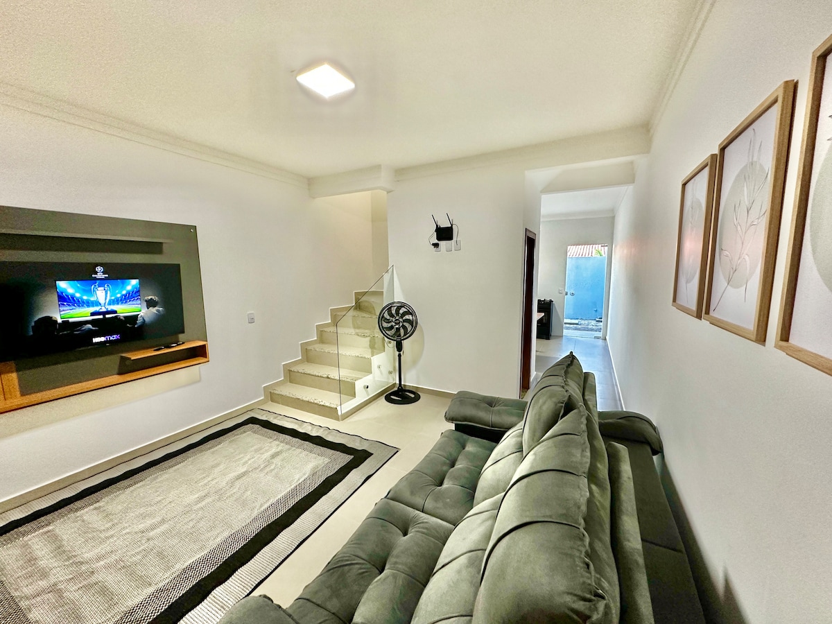 Neues, fein dekoriertes, privates Haus, in die Natur integriert, in einer sicheren Wohnanlage, in der Nähe des Ecoparque. Das Hotel liegt an der Estrada da Balsa, 100 m vom Strand entfernt. Es verfügt über 4 Schlafzimmer (3 Suiten im ersten Stock und ein Schlafzimmer im Erdgeschoss), alle mit Klimaanlage, Smart-TV, Kleiderschränken, Schreibtisch und Stuhl für das Studium und geräumigen Badezimmern. Komplette Küche mit Brauerei und extra großem Brastemp-Kühlschrank. Wohnzimmer mit 65-Zoll-Smart-TV und Klimaanlage. Großer privater Gourmet-Bereich mit OFURÔ und Grill. Bettwäsche (Perkal) und HANDTÜCHER.