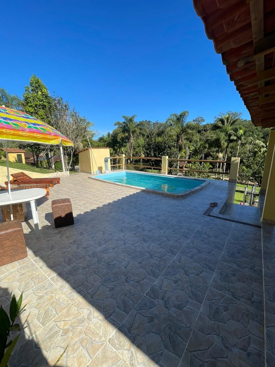 Sitio para descanso com churrasqueira e piscina