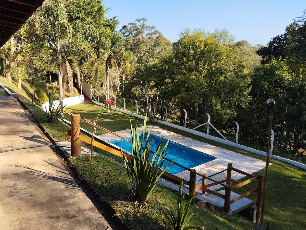 Kommen Sie und genießen Sie Komfort, Freizeit und Ruhe mit Ihrer Familie und Freunden! Schöne Grünfläche mit 230 Quadratmetern bebauter Fläche. Das Landgut liegt 45 Minuten von São Paulo entfernt und eignet sich hervorragend für Veranstaltungen (Geburtstage, Tagungen) oder für diejenigen, die abschalten möchten. Wir haben einen gemütlichen Innenbereich sowie einen Pool, einen Grill, WLAN, Smart-TV, Obstbäume und erhalten gelegentlich Besuch von Tukanen und Affen. Wir freuen uns auf Ihren Aufenthalt bei uns.