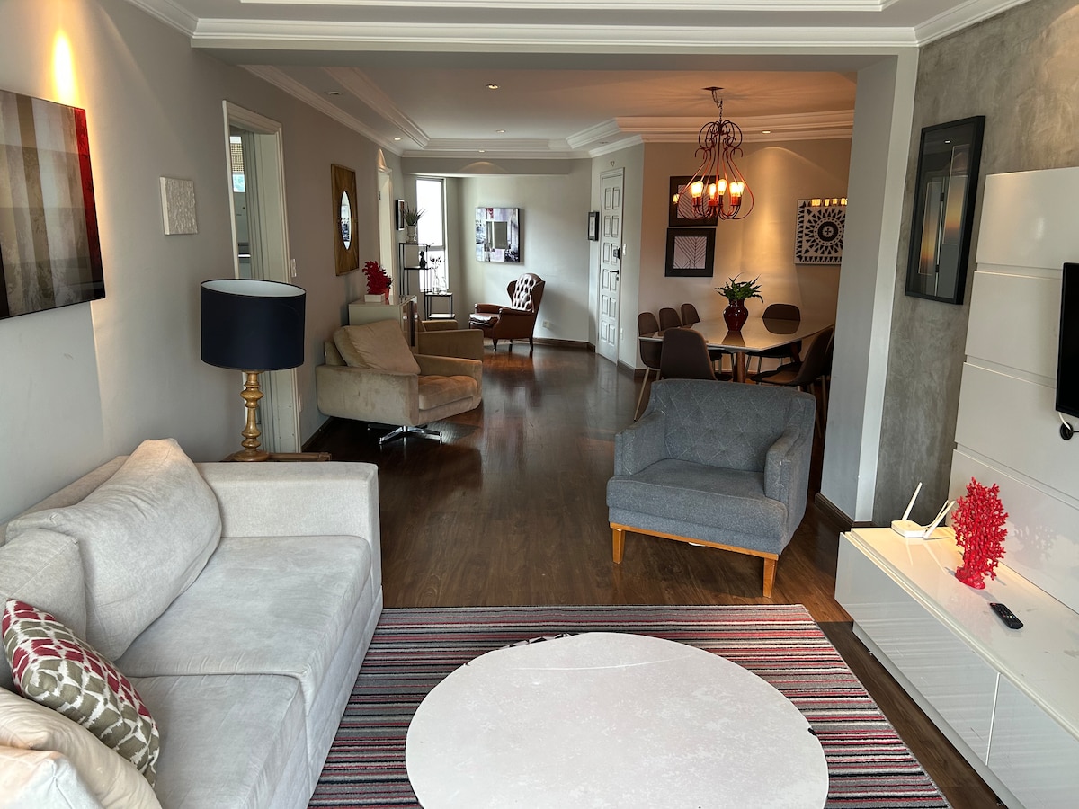 Komfort und Ruhe im Zentrum von Serra Negra. 115m2 Wohnung, charmant, mit Blick auf, mit freiem Blick, im Zentrum von Serra Negra/SP. Passend für gut belüftete, breite, klare, ruhige und komfortable Umgebung. Wohnwohnung im 5. Stock, Gebäude mit Aufzug, Safe, beleuchtet in einer ruhigen Straße im Zentrum, 400 Meter von der Hauptstraße entfernt. High-Speed-WLAN im gesamten Apt Kostenlose Telefonate in ganz Brasilien TV 50" Full HD Minimum von 2 Nächten. Willkommen