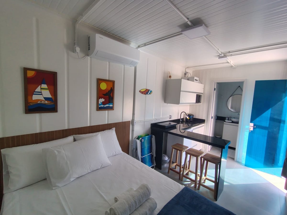 Bem-vindo ao nosso Container 🌿✨ Uma hospedagem charmosa, moderna e criada para quem ama conforto, estilo e praticidade! • 🛏 Quarto aconchegante com cama confortável • ❄️ Ar-condicionado para noites perfeitas • 🍳 Cozinha equipada • 🚿 Banheiro privativo •🚗 1 Vaga de Garagem • 🌳 Área externa estilosa para relaxar •🏖 4 min - Praia Ubatuba, Enseada e Prainha Ideal para quem busca tranquilidade, privacidade e uma experiência diferente 😍 Perfeito para casais e passeios em Família 👨👩👦