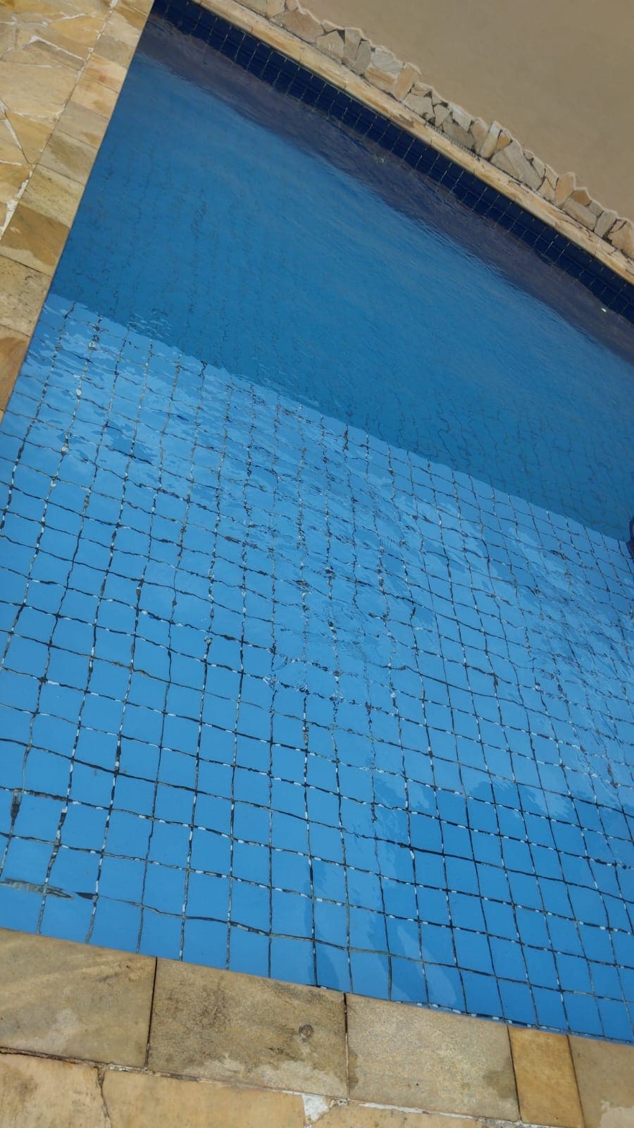Casa térrea de 2 quartos, sala de estar, cozinha/edícula e lavanderia. Quintal amplo e arborizado,com piscina, mini-campo de futebol, quadra esportiva e garagem coberta. Piscina de alvenaria , com 8 metros de comprimento por 4 metros de largura, com profundidade variável e gradativa, começando em 80 cm até atingir 1,80 m. Há internet de fibra, com velocidade de 150mb, disponibilizada via conexão wi-fi.